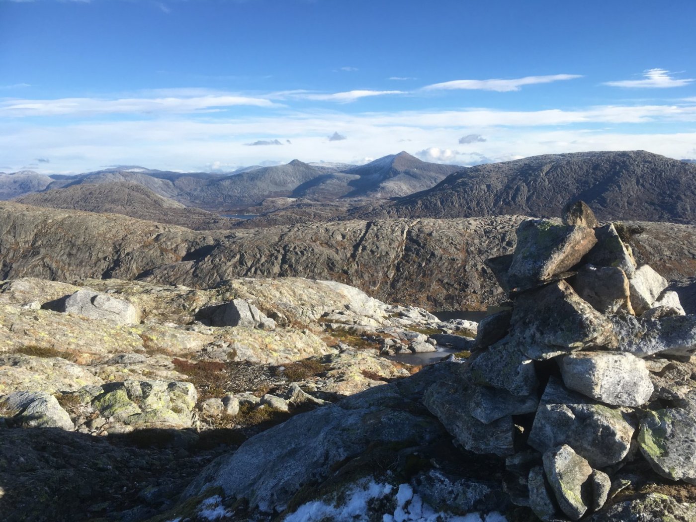 21. Traff en gang et jaktlag. Når jeg kom gjennom ura i god fart med stavene til hjelp, utbrøt han ene - "der kjem kjerringa med staven". Det var i grunnen ikke vondt ment, men at dette med bruk av staver i fjellet kan virke merkelig for de som ikke har prøvd det er nok en grunn til at mange ikke bruker det. Det er stor forskjell på stavgang langs en asfaltvei, kontra gåing med stor sekk i ulendt terreng med staver. Det er helt uvurderlig i stor ur.