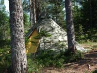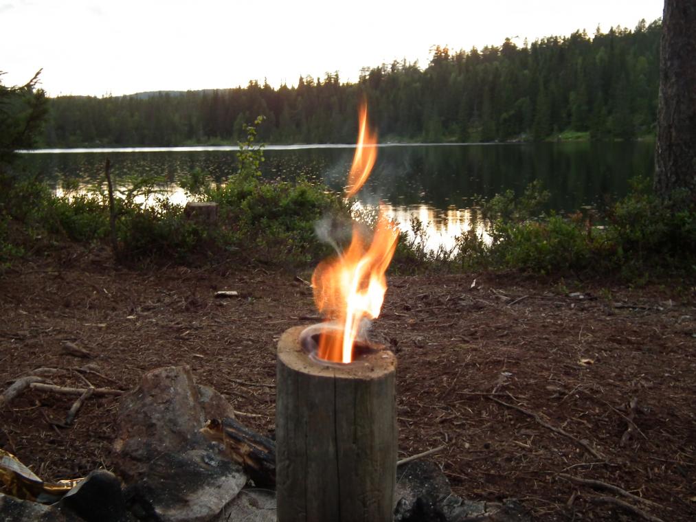 7. En par dager med fiske og avslapping i et av østlandsnorge vakre skogsområde frister alltid. Nå bydde muligheten seg. Min sønn blir med. Simen på 9år. En ihugga fisker blitt etter den flotte ørreten beit på Hallevannet for noen mnd siden. Etter stopp på Siljan for fiskekort og bomnøkkel, blir det km på km innover på grusveien mot Skrim og Sauherad Naturreservat. Grorud Kapell Været er strålende sol og svak vind fra sørlig retning. Det er uoverkommelig her oppe. Flott skog bruser med sitt nærvær, og vi som utenforstående får slipe inn og bevitne slik natur. Vanna sier velkommen "ska dykk vera" og prøv gjerne stanga for her er det bag limit. Det betyr fisk.-)) Vi slår leir og setter opp lavoen på eit flott sted like ved østenden på Tverrvannet. Praktfullt med leirplass der vi er km-vis fra folk og den totale stillhet råder. Etter leirsetting blir de fisketur. Vandrer litt rundt om og prøver litt forskjellige vann. Men et sted biter det vist bedre en de andre. Min største ørret i på lenge. Drøye 700gr å rød og fin i kjøttet. Pga all regnet i det siste er det så vått i bakken at mann kan bade i mosen. Da tar jeg sjangsen i vindstilla på kvelden å fyr opp en medbrakt,hjemmelaget fakkel for anledningen. Artig anrettning. Kvelden kommer over oss og det blir magisk. Med bever på svøm med grein i kjeften og vakende storørret anser vi kvelden som perfekt. Selv Simen påpeker: Pappa, hør hvor stille og deilig det er her. Skulle ønske vi kunne bli en uke. Tror de vi blir lei av fisk og vi blir her hele livet,? avslutter han. Vel en fare for det. Men dette synet , friske lufta og livet som sådan i denne praktfulle naturen blir jeg nok heldigvis aldri, aldri lei... En hyllest til frua/mamma fra gutta som savner hun. Smelter nok når ho ser dette... Utrolig hva lang lukkertid kan få fram God Natt Morning. Etter en regntung natt våkner vi til nok en dag med lettskyet vær og svak vind Frokost på ekte skogvis. Alla speilegg med skaubacon. Herlig. Bare synd magen ikke makter mer etter uker med magesykdom. Etter noen timer med fiske både her og der rundes turen av og vi drar hjem med gode minner. MYE latter og morro å se tilbake på. Far og sønn, Gode venner og to ildsjeler for fiske og friluftsliv må innse at hverdagen kaller. Tusen hjertelig takk for denne gang "marka" Film ligger her: http://www.youtube.com/watch?v=GELNzYYmBT0