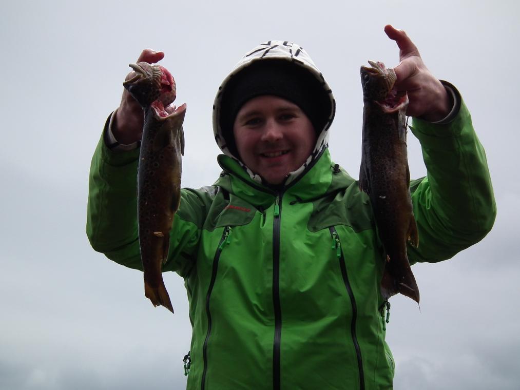 Etter frokost drar vi alle mann alle bort til Flekevatn og fisker der. Det biter og biter stor ørret. Alle mann får fisk. Alt fra 550gr til 1kilo.