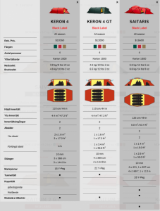 Jeg gikk for Keron 4. Mye på grunn av prisen på Fjellsport. Der er Keron 4 priset lavere enn Keron 3, og med forumrabatt kom teltet på 6700. Det er billig. I utgangspunktet så jeg på 4gt, men 3000 kr for større fortelt vurderte jeg at det ikke var verdt. Og med vekta jeg sparer kan jeg dra med meg en tarp hvis jeg trenger ekstra ly. Keron 4 passer fint til en familie på fire. Vi kan legge oss hvilken retning vi vil og selv fruen var imponert over plassen.