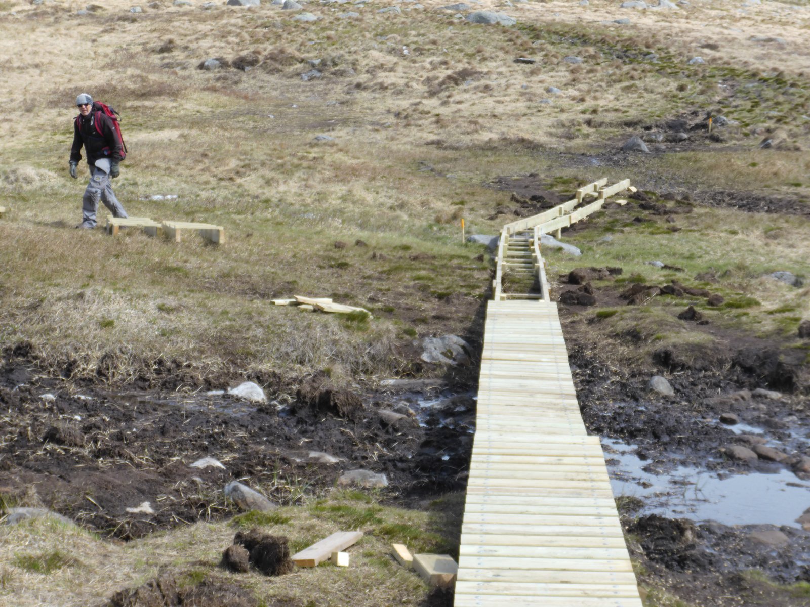 Nå er hovedpersonen godt anbragt i varmen så jeg kan prøve å gi et svar som stand in. Jeg la ikke spesielt merke til forholdene i Tveitabrekka. Det bør ikke være stor forskjell fra Oleskaret til opp mot toppen av Tveitabrekka. Noen fenner i kantene men stort sett bart. Hvis forholdene er like etter at Oleskaret er passert, så er det mer sammenhengende snødekke på flatene. Det var fritt for snø på topper og rygg. Lenger innover ble det nærmest sammenhengende snøflater. Leitevatnet var snødekket og uten synlig vann i kantene.