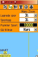 Gpsèn tar kun 500 punkter i lagrede spor. Hvis du vil overføre tilbake spor på gps som kommer over 500 punkter, da må du lagre sporet som "aktiv" sporlogg. Hvis du lagrer en "aktiv" sporlogg så kan du overføre tilbake til gps spor med intill 10000 punkter. Hvis du ikke har vært på kartsiden å endret til 10000 punkter så er det en fordel hvis du skal ferdes langt(sjekk bildet)