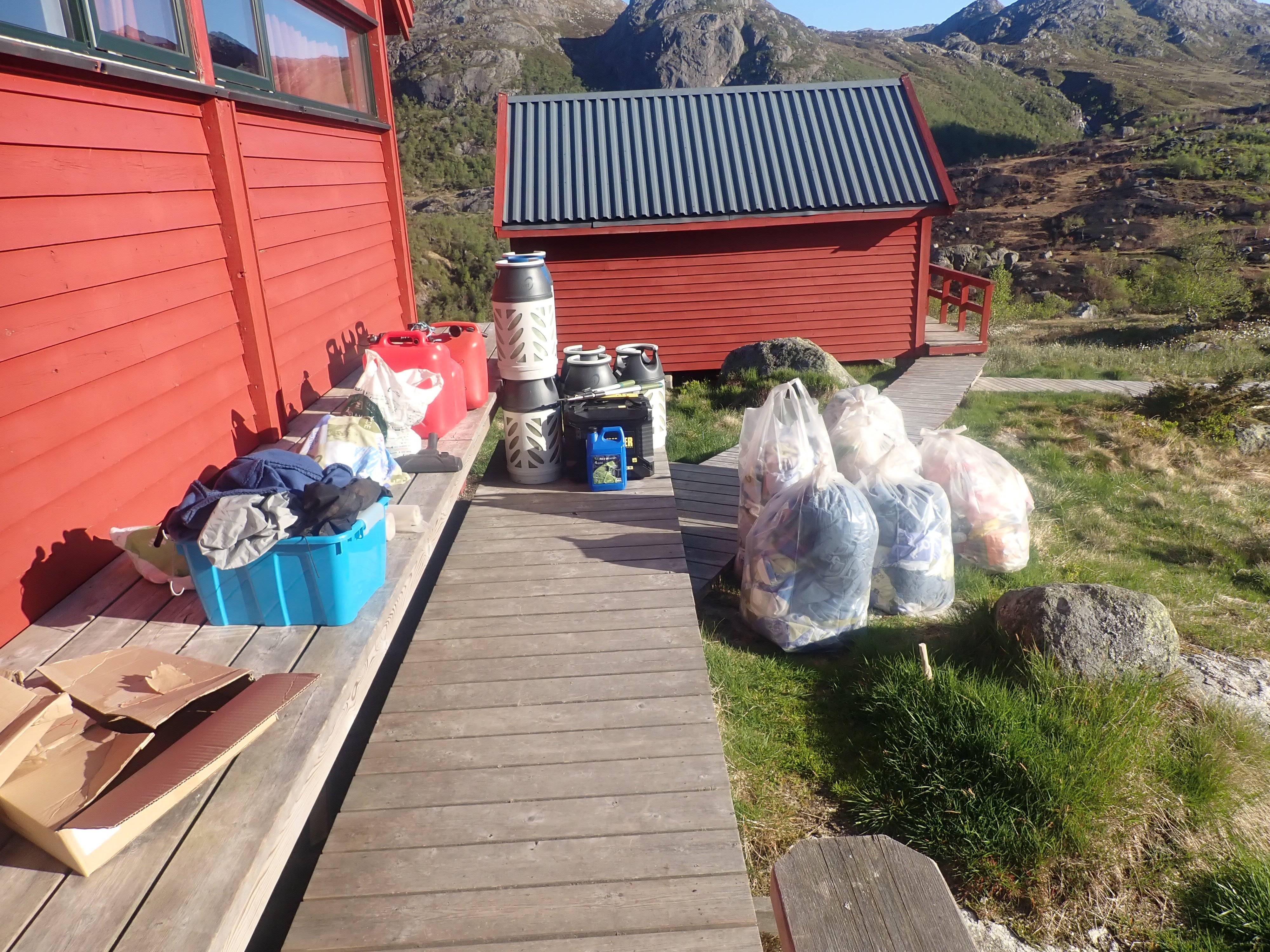 To lange arbeidsdager i heia. Etter en tur over heia tilbake til Hunnedalen, var det en times kjøring før jeg kunne pakke ut etter turen – og ta en rolig kveld hjemme – trodde jeg. Det er ikke alltid planene holder. Noe kommer i mellom. Bestyrerinnen sto i døra og sa at Per hadde ring. Per er ansvarlig for fjellhyttene til STF, og er den jeg snakker med når det gjelder Blåfjellenden. Per er en grei kar, og siden jeg hadde spurt om han kunne ordne helikopter innover, så ordnet han det i en fart. Det ville bli transport innover neste dag – fredag 16. mai. For å kunne fly på fredagen, måtte ting være på plass – pakket i storsekker og stroppet, på torsdag. Onsdagskvelden, som jeg hadde tenkt å tilbringe i stolen med en bok, ble nesten for kort. Jeg måtte skaffe nytt aggregat, nye tørkehåndklær, ny mopp, og en del ting i tillegg. Jeg hadde også varer hjemme, som måtte pakkes å gjøres klar for transport. Det ble en time i godstolen før jeg stupte i seng, etter en lang dag. Torsdag morgen hentet jeg sengetøy på vaskeriet. Møtte Per på Turistforeningen og var ute og lastet opp lemmer på tilhenger, som andre skulle kjøre til Hunnedalen. Hvor jeg måtte være med å gjøre klar lass til dagen etter. For å kunne gjøre klar returlast på fredags morgen måtte jeg være på hytta torsdag. Av erfaring vet jeg at ting tar tid - dobbelt så lang tid som det ser ut som. Jeg regnet ikke med å være klar for å gå fra Hunnedalen før rundt fem på ettermiddagen. Klokka kvart på fem tråkket jeg i vei oppover bakken mot Oleskaret etter en omtrent full arbeidsdag. Det tar nesten to og en halv time inn til Blåfjellenden,hvor jeg også fikk gjort litt – etter å ha spist middag i åttetiden. Det ble en tidlig kveld. Morgenen ble like travel som dagen før. Siden det var tidsfrist for å få ut ting, måtte jeg få samlet alt som skulle legges i storsekker for transport. Sekken kom selvsagt ikke inn før med første lasset. Første post på programmet var likevel å få av sengetøyet på nesten femti senger. Slikt tar tid. Da siste lasset med ved kom inn hadde jeg returen klar. Omtrent som elektrikeren som hadde anlegget klar da det ble sagt «bli lys». Et under. Nå manglet det bare å få på sengetøy. Jeg klarte nesten halvparten av sengene, før jeg i tretiden var helt ferdig. Det ble halvannen time på benken før jeg var klar til å ta ut mot Hunnedalen i femtiden. Etter to og en halv time på beina, i flott vær med vind bakfra og sol i ansiktet, kunne jeg pakke bilen med det som var kommet ut, og kjøre hjemover. Det ble noen skikkelig lange dager. Jeg tenkte ikke en gang på styrketrening de dagene, armene var lange nok. Ellers var jeg i fin form. Det ble nok en tidlig kveld. Mange vil vel mene det er litt vel mye dugnad på to dager, men for min del syntes jeg det er kjekt å kunne bidra. Jeg fikk jo et ekstra opphold på Blåfjellenden ut av det. Og nytt aggregat på plass.