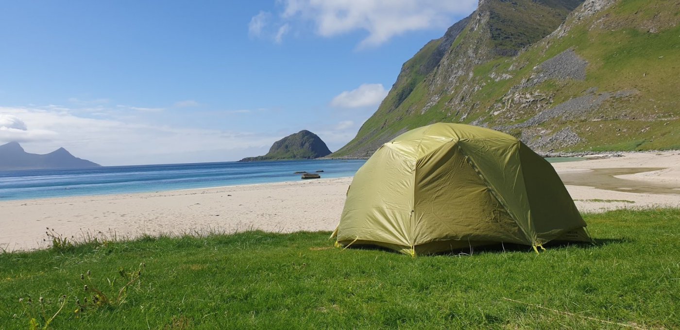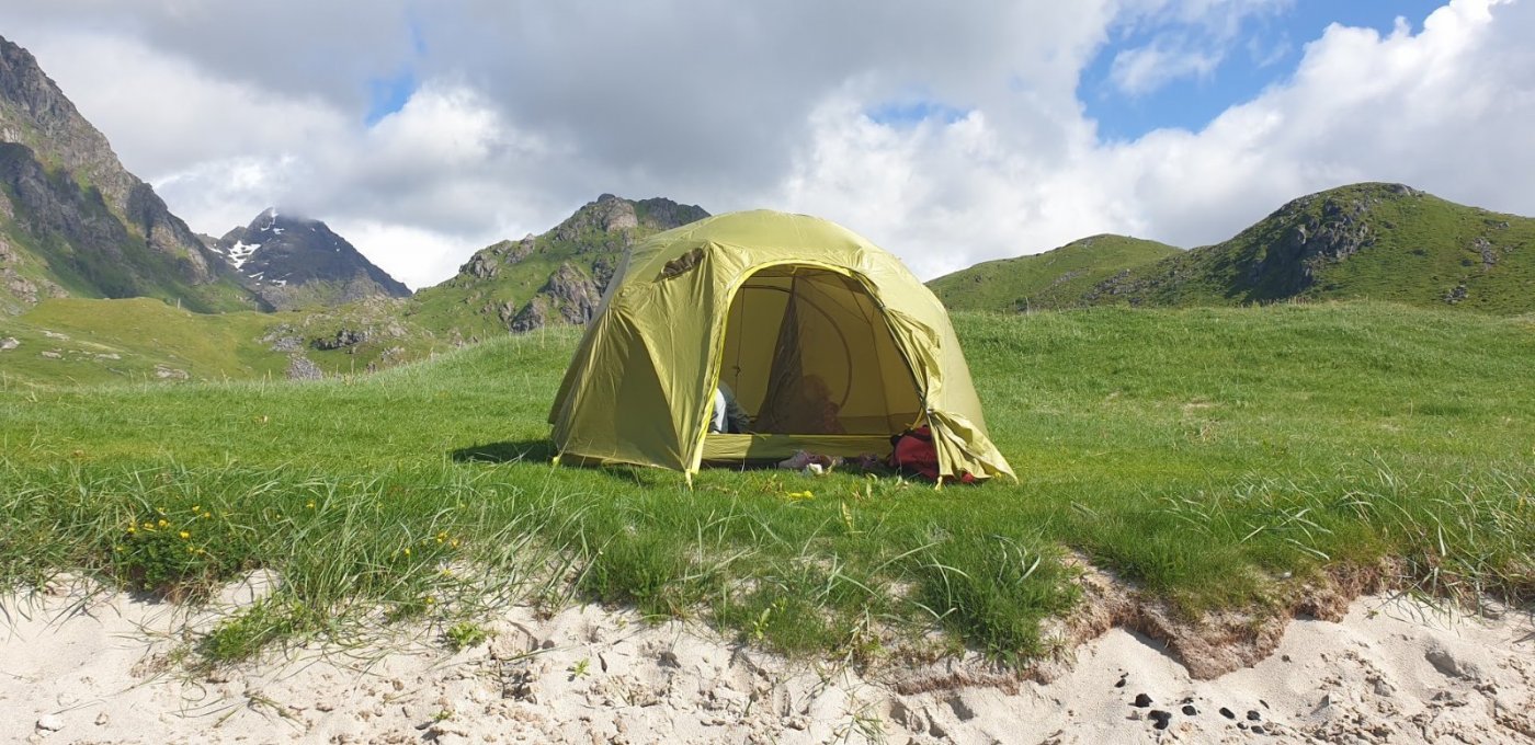 Haha Vi er tilbake, med et helt telt. Det ble en natt på Hauklandstranda rett før de satte igang med teltforbud der. Om teltet: Jeg er veldig fornøyd. Det er veldig god plass, lett og sette opp, og jeg liker at man kan sove med bare innertelt (blir nesten som å sove under åpen himmel). Har egentlig ikke så mye å utsette. Jeg er ikke den som sover mest i telt, så jeg kan ikke si noe om det er bedre eller dårligere enn andre, men jeg er ihvertfall fornøyd. Har egentlig ingenting konkret jeg vil pirke på med.