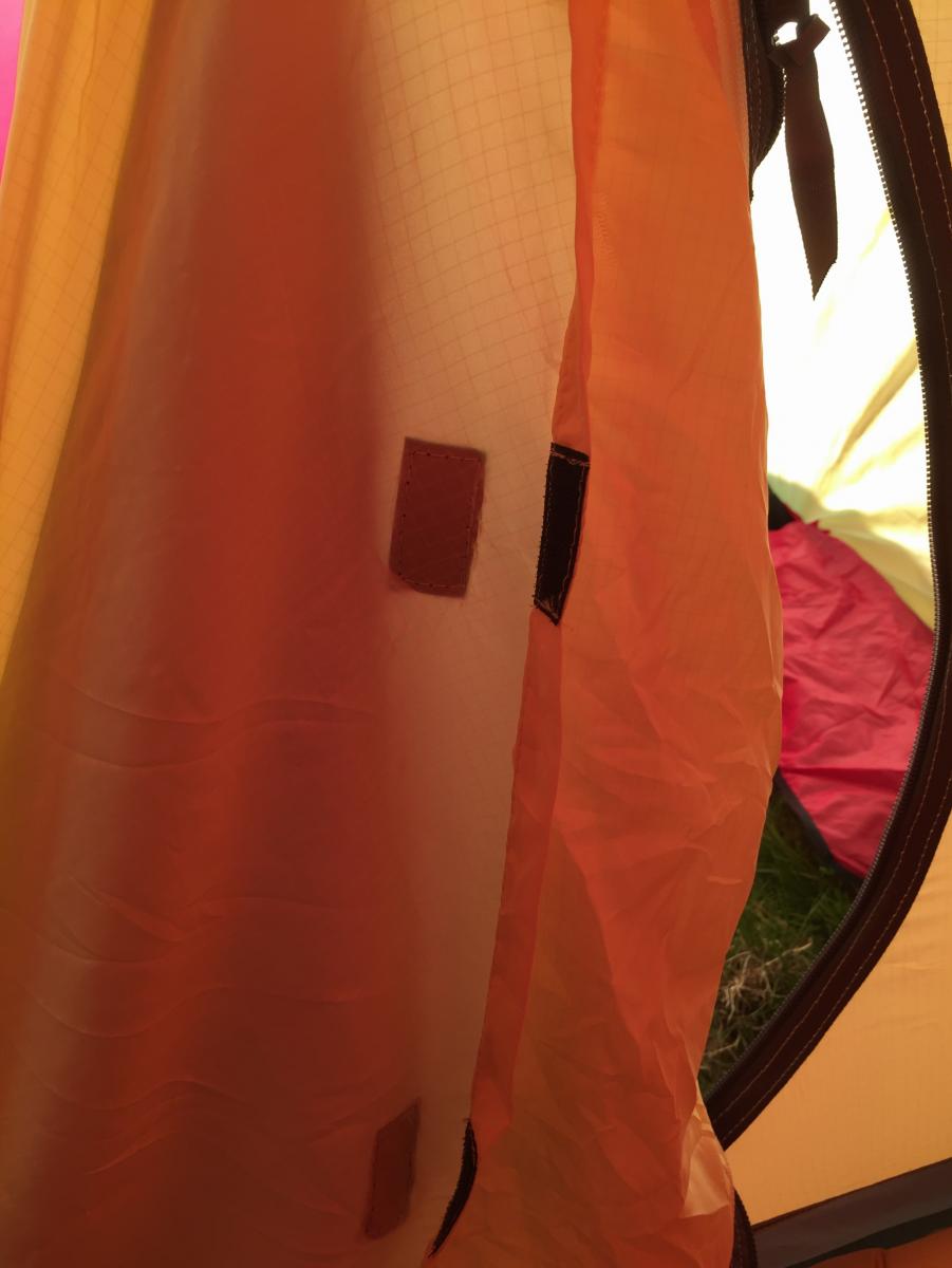 Kjøpte i vinter ett Helsport fjellheimen xtrem 3 camp som i dag skulke få sin første natt ute. Ble mildt sagt meget overrasket da jeg oppdaget flere små hull i området rundt borrelåsen på dør i innertelt. Er det virkelig meningen at borrelåsen her skal kunne ligge å gnage på teltduken? Må døren være rullet sammen for at borrelås ikke skal ligge mot innerteltet? -