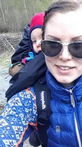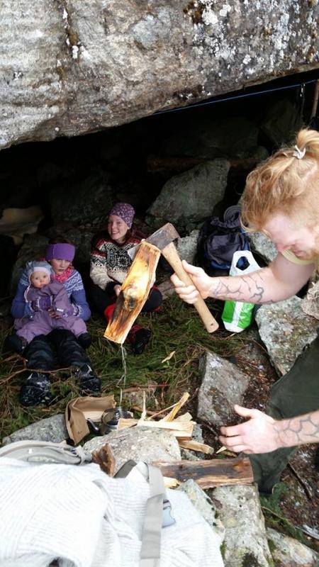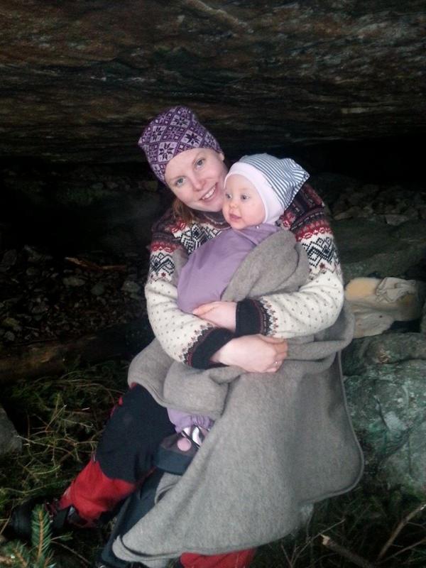 31.03.15 Klart for nok en dagstur til fjells med lillesjefen! Det var meldt fint vær og skikkelig påskestemning, dermed bestemte vi oss for å ta med oss ettpar venner og reise til fjells. Vi har en heller ("grotte") som ligger bortgjemt i fjellet, ca 1t og 45 min herfra. "Naudehelleren" heter den, og det går ingen sti opp på noe måte, man må bruke kjennetegnene i naturen og kjenne seg igjen så godt man kan for å finne tilbake igjen. En kjempe fin tur som går mye langs vann og i endel terreng på slutten opp til helleren. Vi møtte på kong vinter da vi nermet oss fremme, men det gjore ingenting, vi skulle jo sitte under tak. Snuppa var på sin trofaste plass, i bæresystem på pappa`en sin mage. Her storkoser hun seg, snakker til bikjene som fyker forbi, ser seg rundt og lager (stort sett) godlyder. Da vi kom opp hadde snøen skikkelig tatt tak, og det lavet ned! Jeg fikk ett snev av julefølelse, men den snudde heldigvis fort ide kvik lunsj og solo kom opp av tursekken! Vi satt oss godt til rette inne i helleren og fyret opp bålet, her inne er det lunt og godt, granbar over hele "gulvet" og generelt en veldig fin plass å være om det er litt vær slik det var denne dagen. Bålet varmet godt, og vi koste oss med å grille kylling og bacon til den store gullmedalje! Matlysten var defintivit påplass hos både liten og stor. (velvel, lillemor hadde riktignok med most mat hjemmefra, men fikk smake små kyllingbiter hun også, det var stor suksess) (på bildet: snuppa koser seg på fanget til lillesøsteren av en kompis mens mannen hogger ved til bålet og jeg har ett noe merkelig glis.Friluftliv smilet muligens? ) Etterhvert ble det tid for små jenter og sove, og lillemor på snart 9 mnd kan nå også krysse av for å ha sovet i en "grotte". Hun imponerer meg stort og jeg er så takknemlig for at vi har tatt henne med helt fra hun var nyfødt omtrent, slik at dette med å sove ute på andre plasser (telt,åpen himmel,osv osv) aldri har vært noe problem. Bare hun har "kosen" sin og det gode saueskinnet sitt å ligge på så er alt er helt greit syns hun! Hun sov i over en time mens vi voksene satt rundt bålet og drakk kaffe og pratet. Hun måtte til slutt vekkes da det gikk faretruende mot både nytt kveldsmåltid og leggetid. Blid, varm og god når hun våknet! (hun ligger på saueskinn fra nøstebarn, jeg er så fornøyd med dette som liggeunderlag til barn!) Da lillemor våknet ble det tid for litt mer kos rundt bålet, før vi pakket sekkene og sa hade til fjellet for denne gang! Nå er det full planlegging av en 2 dagers overnatting i oslomarka/nordmarka om ettpar uker, håper været er med oss og at turen lar seg gjennomføre Riktig god påske til alle her på fjellforum