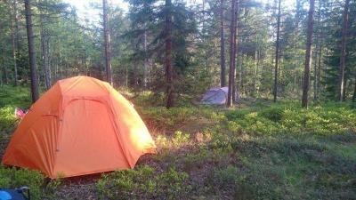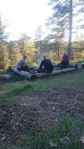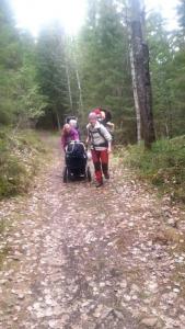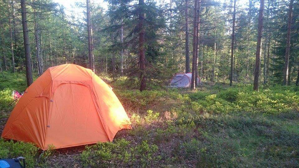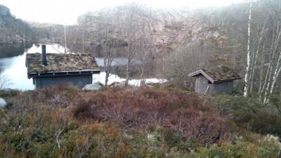 Fredag 21.05 var vi klare, bilen var fylt til randen av bikje,voksene og barn, ja og ikke å forglemme bæremeis,tursekk og alt som hører med! Vi trillet ut fra ferieleiligheten vår i Råde kommune i Østfold da klokka var passert 12, rettningen vi holdt var mot Oslo og nærmere bestemt vestmarka/kjekstadmarka og småvannene! I Moss møtte vi ett vennepar og dems to barn i alderen 1 og 2 år som skulle være med oss på turen. Med andre ord lå det ann til en skikkelig familietur med tilsammen 3 barn i alderen 11 mnd til 2 år, 4 voksene i alderen 27 til 34 år og 1 stk hund i ensom majestet på 3 år! Etter å ha klart og bomme på en avkjøring på E6 og surret rundt i en liten evighet, fant vi til slutt riktig rettning igjen og kom frem til Dikemark i god behold litt senere. Vi parkerte på anvist plass og begynte "prosjekt organiser unger,barn og utstyr" før vi begynte å gå. Vårt vennepar hadde besluttet at barnevogn inn til småvannsbu var en god ide, og de tok absolutt utfordringene på strak arm med eventuelle utfordringer mht terrenget innover i marka. Etter at småsjefene hadde inntatt diverse smoothie og skiver med noe så kreativt som smør, var blodsukkeret til alle stigende (inkludert hunden som fikk tildelt både en og to biter med skive fra de små ) og vi var klare til å gå! Fra parkeringen ved Dikemark sykehus og inn til småannsbu som ligger rett ovenfor småvannene, er det ikke mer en knappe 3 km gange. Været var fint og vi hadde opphold hele veien. Som sagt hadde vårt vennepar satset på barnevogn, og denne ga oss mye latter og morsomme situasjoner. Blandt annet da de skulle passere en svært så sølete plass. Vi andre gikk tørrskodd rundt, mens Far i huset tok tilfart og dyttet på for alt det var verdt! Dette resulterte i at gjørmespruten sto, og sjefen i vognen klappet iherdig i hendene av begeistring! Vi andre fikk oss en god latter vi også, det var litt av ett syn! Litt lenger inn i marka, og bare en knapp kilometer fra hytta, var det en passering som var full av stein. Det ga oss litt utfordringer med barnevognen, som forsåvidt hadde begynt å takke for seg etter den noe røffe behandlingen tidligere i turen. Bunnen subbet i steinene og Våre to sterke menn ble fullastet med henholdsvis utstyr som lå i vogna OG ett barn som egentig hadde tilholdsted i vognen! Jeg og Mor til de to barna tok saken i egene hender: Med ett barn hver på ryggen dyttet og dro vi vogna gjennom steiner og overganger helt til vi var fremme ved hytta. Vogna var ett stusseslig syn da vi kom frem, og ble ganske så soleklart pensjonert etter lang og tro tjeneste! Da vi kom frm til småvannsbu hadde vi plassen for oss selv, og kunne gå på en liten oppdagelsesferd før vi pakket ut! En utrolig barnevennlig plass, men enkel og fin ankomst, omlag 1 time brukt med barnevogn og litt pauser pga ungene. (kan fint halvere denne tiden inn vil jeg tro) Det er ingen tvil om at de som har restaurert hytta i 2008 har gjort en glimrende innsats! Her var det gass til koking, en egen brønn for vann og generelt sett en hjemmekoselig og flott hytte med 4 sengeplasser og mulighet for å benytte seg av både åpen peis og vanlig vedovn. Idyllisk og fin plass med utsikt ned mot småvannene, og ikke minst variert terreng som er morsomt å utforske for de minste! Første kveld gikk med til utforsking for ungene mens vi voksene laget klar for tacokveld! Etter mat og kos på hytta var det påtide for de små og innta soveposer og finne søvnen. Alle tre ungene inn på samme soverom, liggende på gulvet av sikkerhetsmessige årsaker De sovner alle 3 på rekke og rad, og vi kunne nyte noen kopper kaffe og prat forann peisen før det også var tid for å ta kveld for oss. Dagen etter våknet vi i 08 tiden, og det var bare å få i seg frokost for små og store på 2 og 4 bein før vi kom oss ut i solen! Denne dagen var det flere som tok turen til småvannsbu, den ene hyggeligere enn den andre! Historiene var mange og tonen var god blandt alle som dukket opp. Flere barnefamilier og familier med hund. De to største ungene fant sport i og regelrett stupe i vannskåla til bikja, og etter noen skift måtte vi fint evakuere samtlige vannskåler opp i høyden! Jeg ble oppgradert til "trollet under broen" omtrent som i bukkene bruse, og fremfor å stupe i vannskåler, ble det plutselig utrolig mye kjekkere og løpe over tømmerstokker hvor jeg lå under og skulle "ta" de som løp over Etter mangfoldige timer lek og morro, lunsj i magen og deretter middag, ble det tid for å sette opp telt. Vi hadde tenkt til å ta denne natten ute, noe som betydde den aller første teltturen til de to eldste barna på henholdsvis 1 og 2 år. Vår lille snuppe på 11 mnd er allerede godt vant med telt og uteliv, som flere av dere nok har sett i andre rapporter. Teltene kom opp og vi var litt bekymret for om de små skulle finne søvnen, med tanke på solen som fremdeles tittet frem og gjore det meget lyst og trivlig i teltene. Vel... vi burde ikke ha bekymret oss så mye, for ungene sovnet en etter en når klokken såvidt var passert 20.00! Dette første til voksentid rundt bålet til langt utover de små timer, med litt godt å drikke og utallige historier og morro! Dagen etter våknet vi alle rett over klokka 07, og ungene hadde faktisk sovet gjennom hele natten uten så mye som en lys! Rellativt uthvilte satt vi oss inn på hytta for litt frokost og varme. Været hadde snudd og det var tunge skyer denne dagen, samt litt vind og kjøligere enn de andre dagene. Været stopper ikke turfolket i pinsen, og også denne dagen kom det både små og store innom hytta og slo av en prat! Etter noen timer pakket vi sammen tingene våre og pekte snuter og neser mot hjemveien! Vognen som absolutt hadde gjort sin jobb, kom på mirakuløst vis med oss ned igjen, selvom den nok har gjort sin siste tur! Vi var alle enige om at dette har vært en fantastisk tur hvor både barn og voksene har storkost seg! Denne turen kan jeg varmt anbefale 