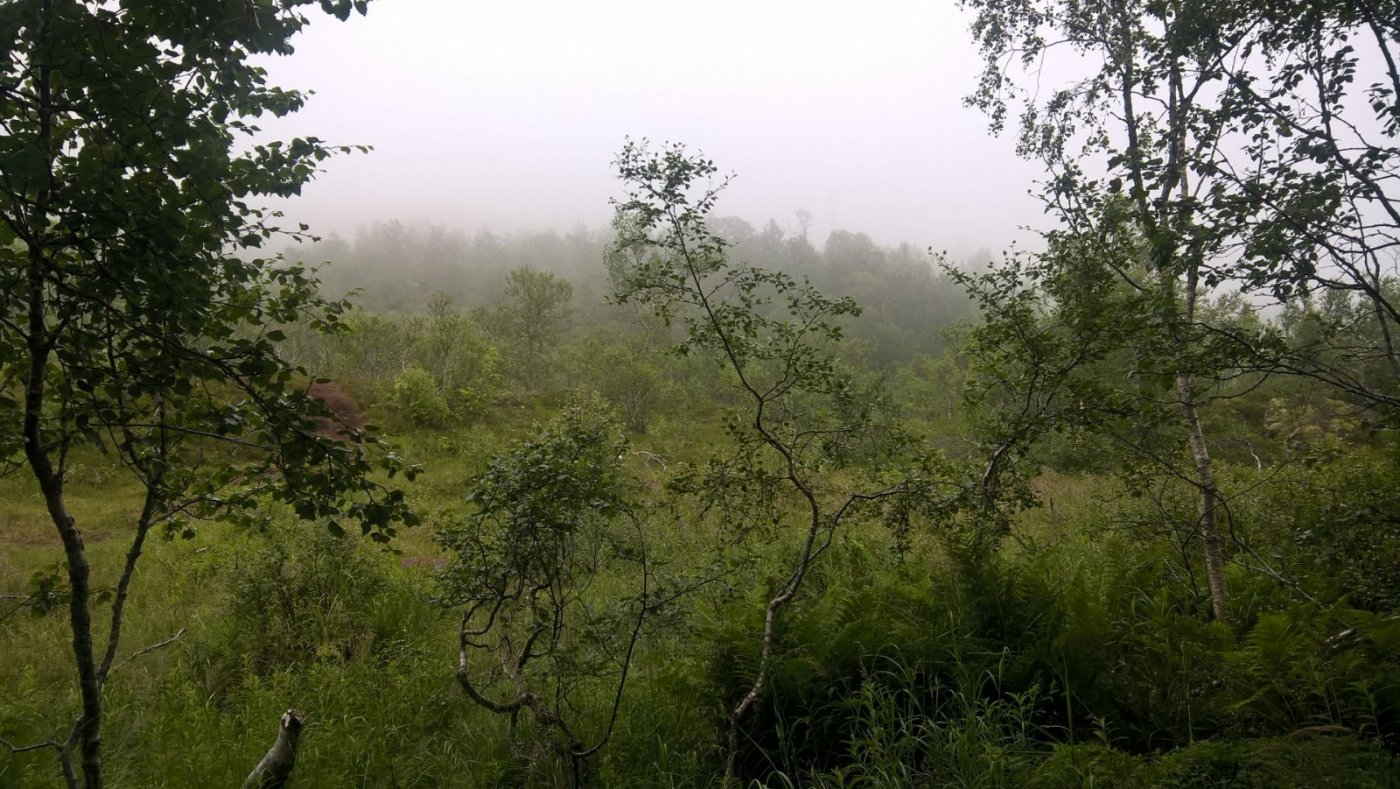 Prøvde meg på det der i sommer å ligge under åpen himmel. Det var jo strålende sol, godt og varmt, så jeg gadd ikke sette opp tarpen... Våkna til dette....