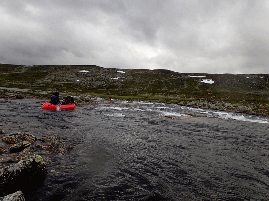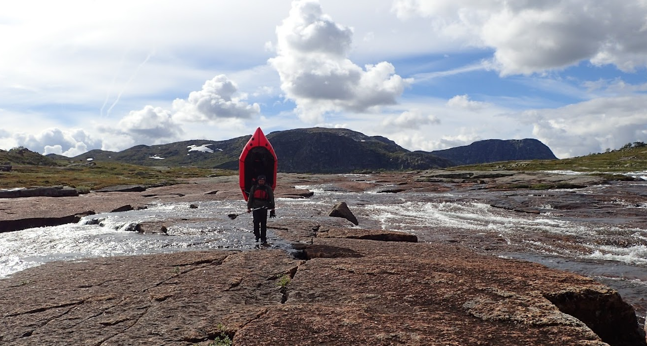 13. Den viktigste faktoren for valg av lengde på packraften, er hva du skal bruke den til. Skal du bruke den til alt, inkludert elverafting opp til klasse III-IV, da burde du kjøpe en som er tilpasset slik bruk. Og da er det naturlig å kjøpe en der du sitter noenlunde utstrakt med beina, men kort nok til at du kan spenne beina mot potongen i bauen. Skal du padle hovedsakelig vann og fløyte ned enkle elver, da kjøper du en der du får plass til bagasjen du skal ha med deg, som har den fargen du har lyst på. og som har sprut trekk eller ikke. En større og lengre packraft er gjerne litt mere retningstabil enn en kort en. Jeg anbefaler å bruke minst 5 dager på turen. Ta gjerne en to-natters en plass og ta en 'topptur' for å få beveget kroppen litt og sett litt mere enn bare elvene og vannene. Vi var tre stk som padlet kvennavassdraget sammen i August 2020 (19.08 - 27.08) Jeg hadde padlet packraft og enkle elver tidligere, for de to andre så var det første gangen de satt i en packraft. Vi endte med å padle nesten alle elvene mellom vannene, med unntak av noen korte strekk here og der som var hakket for heftig eller ikke padlebart, ned til den røde pilen på bildet. Derifra valgte vi å gå ned til Mogen hvor vi hadde avtalt skyssbåt til Skinnarbu (Vi satte igjen bilen der og tok buss til Røldal, Taxi opp til nordenden av Valldalsvatnet og gikk inn til Holmavatnet den første dagen) Vi kubbet rundt flere ganger i flere av elvene, at vi mista ei fiskestang, ødela snella på den andre, og 'måtte' fiske med håndsnøre, og at jeg har aldri vært så kald og våt på tur, husker jeg knapt i dag. Husker bare at det var en helt fantastisk tur. 😀 Vi ble tatt igjen av to karer ved Sandhøl som hadde brukt tre dager på turen. De hadde gått av bussen nedenfor Valldalsvatnet, gått opp til det og padlet derifra. Tilnærmingen deres var at om de hørte det bruse når de nærmet seg et elveløp, så tok de sekken med packraften på ryggen og gikk ned til neste vann, så de hadde knapt padlet noe elv på turen. Vi ønsket derimot å padle mest mulig av elvene, så det ble brukt mye tid på å gå ut av packraftene å sjekke elvene (som man burde gjøre) og så diskutere litt forskjellige ruter vi ville prøve. Litt bilder: Utsett på Holmavatnet På tur ned elva fra Holmavatnet til Kvennsjøen Kvennsjøen er stor.. Ett av partiene som ikke ble padlet.. Og ett til Og så en liten gif Får skikkelig lyst å ta turen på ny nå.