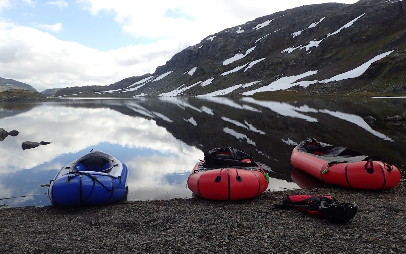 12. Så herlig ! Da er det bare å gi gass. 🥳 Man lever bare en gang. Det var fløt fortsatt en god del is på Holmavatnet da vi var der i midten av august. Packraften på bildet er en 270 modell, og Brorsan som lånte den var såpass fornøyd at han kjøpte den av meg etter turen. Han var vel den som kubbet rundt minst av oss, og den som var lur nok til å ha gore-tex på seg slik at han slapp å sitte våt i packraften. Da jeg var på besøk heime i Nord-Norge i fjor og padlet en lokal elv sammen med ham, fikk jeg sammenlignet den mot en en annen mindre packraft han har kjøpt i etterkant, der jeg startet med med den minste og kubbet rundt flere ganger, mens han satt den største å lo.. Da vi byttet var det en helt annen opplevelse. Elva var litt roligere nedover derifra, men jeg merket at 270 modellen var mye mere stabil og derav mye mere tilgivende i elva. Jeg er 170 og bruker som regel en Alpacka Denali Llama, som er rundt 250 cm lang. Jeg når ikke ikke frem til potongen, men har ikke padlet så heftig med den at jeg har følt behovet for å spenne bena mot potongen. Og jeg er ikke så interessert i å padle noe særlig heftige elver Om du kjøper packraft fra en velrenommert produsent så bare husk. Båtene tåler mye, mye, mye mere enn du tror. Vi dundret inn i og over steiner, og det var ikke akkurat rullestein med glatt overflate... og jeg tenkte i begynnelsen noe sånt som - "ja ja, da kommer reparasjonskit'ene vi har med til gode allikevel, og det var jo kanskje dumt av meg å låne bort packraftene til disse to kronidiotene som kjører over hver bidige stein de ser.." Reparasjonskittene ble aldri åpnet. Det var dog litt slitasje/noen riper på bunnen der setet er og der vi hadde føttene. (dvs det som stikker lengst ned.) Det som fikk mest juling var årene, Jeg hadde en Manta Ray Carbon åre, der skaftet er carbon og bladene i plast, mens de to andre hadde årer i hel karbon. På deres hadde hadde alle bladene sprukket (er sandwich konstruksjon med to ytre lag av karbon limt sammen). Så gutta endte med å kjøpe årene av meg til kost pris, da de var nye da vi la ut på tur. Så anbefaler en to delt åre med skaft i karbon og blad i plast. (eventuelt fire delt om du ønsker den mindre, jeg har det, men deler aldri åren i mer en 2 når jeg er på tur) Vekt er jeg usikker på. Men tipper den lå mellom 17-20 kg med alt. Siden turen for det meste foregår på rumpa, så unnet vi oss luksus som Helinox stoler, godt å drikke og annet snacks. Vi delte telt og kjøkkenutstyr. Tja, trenger du ny sekk da? Jeg hadde en HMG Windrider 4400, mens de andre hadde hver sin Osprey Exos 58. Innholdet mitt var pakket i HMG pod's og lå i en gjennomsiktig søppelsekk inni sekken. De andre to brukte vanntette pakkposer og gjennomsiktig søppelsekk. Sekken min er laget i vanntett materiale med tapede sømmer, så jeg hadde mindre vanninntrenging enn de andre to når både vi og sekken havnet under vann. Men vi opplevde ikke at noe utstyr ble vått. Lineren av søppelsekk var med hanker som ble knytet sammen i toppen med en enkel 'kjærringknute'. Så jeg tror du fint kan bruke sekken du eventuelt har, så sant du får plass til alt du skal ha med deg, og heller pakke innholdet i vanntette pakkposer og bruke liner av søppelsekk slik vi gjorde. Packraften, åren, vesten og hjelmen var pakket utenpå sekken mens vi gikk. Jeg har i ettertid kjøpt en ny sekk for kano og packraft turer, en nydelig blå Exped Expedition 80L sekk som er vanntett (rulletopp og tapede sømmer). Dette pga at sekkene fikk en del juling når vi kubbet rundt i elvene og måtte snu packraftene mens vi sto ute i elva, og materialet som sekken min er laget av ikke tåler så mye gnisning mot stein eller lignede før det går hull på den. Det ble ikke noe skader på den i løpet av turen, men ønsker å beholde den så lenge så mulig, så den er hensatt til gåturer. Exped sekken er bombesikker, men ser dessverre til å ha gått ut av produksjon. Et godt tips er å pakke sekken noenlunde full, med vekt tilsvarende det den blir på turen, blåse opp packraften, og teste løsninger for å feste den godt til packraften. Merk at en del spennreimer ikke låser så godt når de blir våte. Vi festet sekken slik at vi kunne ta den på ryggen mens båten hang på, og gå slik som på bildet, mellom partiene som vi valgte å ikke padle. Vi startet å gå klokken 1705 og var fremme ved Holmavatnet 2120. En distanse på ca 13 km, kveldsmørket kom noen kilometer før vi var fremme ved vannet. Det går vei helt opp til Middalsbu, så vi valgte å gå opp til hytta og så følge stien som går mot Litlos (Som vi forøvrig tok inn på andre natten, anbefales!) Er ikke så mye stigning, så opplevde det ikke som en spesielt tung etappe. Men vi hadde ett par og tjue varmegrader de første timene, så litt svette ble vi. Nå klør det i 'Packraft-foten' gitt !
