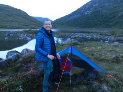 17. Jeg har brukt en 8"X10" cat cut silnylon tarp på fjellet i fjor, og støtter bathtup-forslaget, skjønt det gikk fint uten. Fikk problemer ved Vasstindbu som er en kraftig bardunert hytte etter at den forrige blåste bort, da vinden ble for drøy og festet i bakken for lite. Brukte store steiner, men de flyttet seg, blir voldsomme krefter i en slik tarp. Vinden skiftet retning i ett sett. Er du derimot ikke i følge med folk som insisterer på å campe midt oppe på de snaueste fjelltoppene, så er det ikke noe problem, tenker jeg. Anbefaler en Cat cut-tarp og gjerne bardunstrammere og rikelig med bardunlengde, da du har langt flere muligheter for feste på den måten. Et tyvek-laken under som ikke er for stort burde også verge greit mot vannet. Egentlig var jeg såpass fornøyd med tarpen at jeg burde gjenta det, men har gått til anskaffelse av en Zpacks Duplex for å øke komforten når vi er to eller været er meldt å være veldig vått.