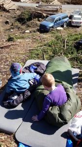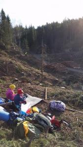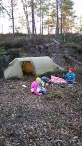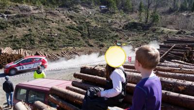 Jada, vi har vært på tur, og dette blir en rapport med en liten vri. Hurum har fått sitt første sprintrally og det måtte vi bare overvære. Jeg er ingen bilentusiast, men jeg har en 4åring og en mann som såvisst skulle ha med seg dette. Ungene og jeg tilbragte natta i skogen, for det ville de. Det var flere som hadde benket seg til på gode plasser og tydelig hadde tenkt samme tanken, men vi gikk litt inn i skogen og fant oss en rolig plass vekk fra festende ungdom og høy musikk. Dagen etter flyttet vi oss ned til utkikkplassen vi hadde sett oss ut. Det var herlig stemning med fint vær, folk som kom gående, syklende, folk som skravlet, rallydeltagerne som prøvekjørte løypa. Ungene fikk lekekamerater på besøk og vi voksne fikk likesinnede å snakke med. Grunneier som vi kjenner var en av disse, og helt tilfeldig hadde han nettopp felt skogen og det passet utrolig bra! Mange som hadde tent bål da en bil kom kjørende og formante folk å ikke tenne bål rett på bakken. Kun de med bålpanne og medbragt tønnegrill og lignende fikk tenne. Vi holdt oss til stormkjøkkenet denne dagen. Så begynte de å kjøre. Å GUD SÅ KULT DET VAR!! Voksne og unger helt i hundre!! Guttungen fikk lekekamerater fra barnehagen på besøk og det var stas. Gutta koste seg i soveposene. Her er det far som kjører og datter på 16 er kartleser. Det var rått, og jeg ble helt hekta. Det var rene Flåklypa-stemningen. Helt herlig Vi kom i prat med kjørerne av denne bilen som måtte ut av løpet da bilen gikk tom for strøm (!) Minsten ble stolt foreviget sammen med bilen.