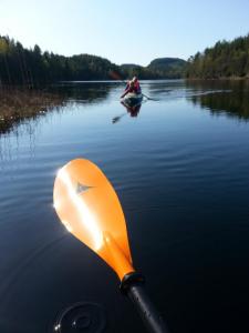 Har bare et par bilder fra en kort tur der vi måtte hilse på en av forumets celebriteter (som får avsløre seg selv om vedkommende vil) som i helgen beæret Hurum med sitt nærvær. Hurum viste seg selvfølgelig fra sin beste side og ingen av oss hadde lyst til å reise hjem i det fantastiske været... På Røskestadvann Her drar vi kajakkene opp på land og skal bære de opp til Langvann, ca 50 meter. Sjekk tøffe flyteøya, den flytter seg fra nord til sør på sommerstid og tilbake på vinteren. Legger ut ved Langvann Idyll! Kom til Hurum folkens! Frosk. De lange svarte lenkene til høyre i vannet er egg. Utrolig fascinerende