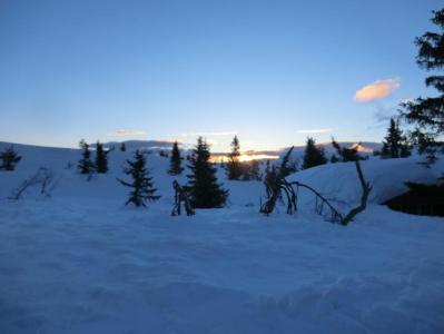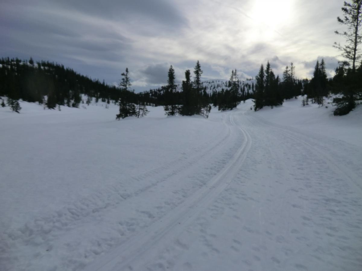 En tur i Finnemarka på ski. Ok skiføre på veg innover fredag og fullstendig kladdeføre på veg ut tidlig på lørdagen. Snø kom i store flak og tynga ned det som var. Våkna til en tarp som var tynga ned av tung og fin snø over hue på meg og fyrte opp primusen under den. Hadde kladder under hele skia på veg utover mot Eiksetra på morran. Hengekøye var nattens soveplass