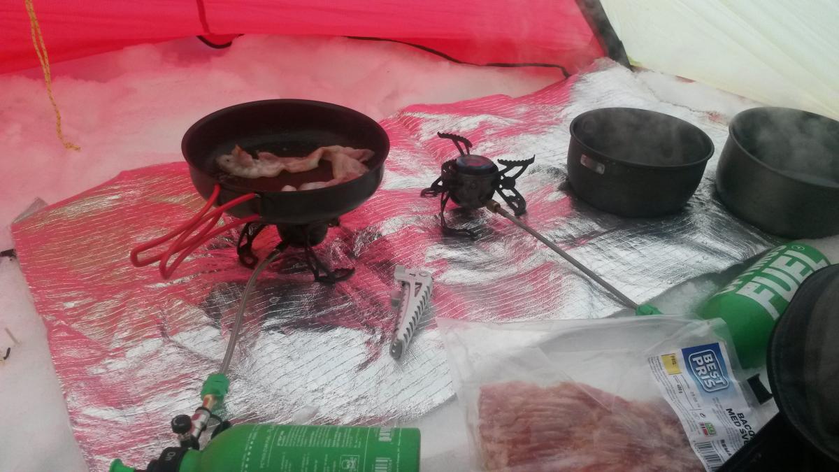 Ja, og når man allerede hadde vært ute fra tirsdagen av fra Blefjell, hatt flere knallflotte dager så var det ikke så ille å måtte gi seg heller, selv om man gjerne skulle vært ute fortsatt. Nå har det vært pleiing av en heftig vannblemme/gnagsår samtidig som at kjøleskapet ble litt raida. Ikke det letteste terrenget å trekke en pulk gjennom har jeg erfart å frister mer å gå fra Finse neste gang vis jeg tar en slik tur. Her er noen bilder: Noen ganger er det kjekt med 2 primuser selv om det blir meget varmt inne i teltet