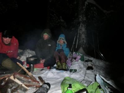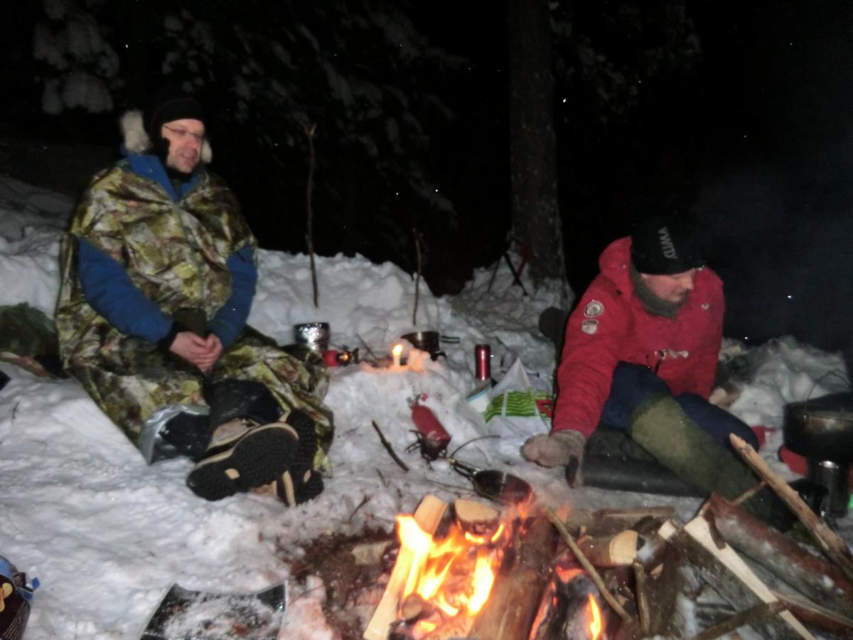 Det var planlagt at vi skulle samles lørdag 18. januar i nordenden av Skapertjern. Først trodde vi at det ikke kom til å komme noe snø til den tid med all varmen vi hadde. Men dette forrandret seg fort da datoen rykket seg stadig nærmere. Da starten på uken kom så skjønte man at her kom det til å komme snø noe det også kom. I gode mengder slik at planlagte startpunkt for enkelte måtte justeres. De som skulle starte fra Heggedal å gå til fots måtte endre plan og rutevalg å gå fra Røyken stasjon og innover via ROS hytta. Jeg selv som er vokst opp med dette området gikk fra Myrvoll tidlig på lørdagen. Utstyrt med en pulk hvor det som burde og ikke burde være nødvendig var lempet oppi. Bågasag og en større kløyvøks var med for å lette vedsamlingen. Min ferd gikk langs med østsia av Skapertjern der det per dags dato ikke er blitt kjørt opp løyper. Så de ivrige skigårede som gikk i sporet etter meg fikk jo en godt oppkjørt løype. Planen min var å gå inn via Sørummyra og inn til nordenden Skapertjern til der det egentlig var tenkt å ha leirplass. Men med snø og litt feilnavigering som det fort kan gå, men i seg selv ikke noe nevneverdig farlig så endte jeg opp med å fyre bål på en utstikker ikke langt fra der løypene går og i seg selv ikke så langt fra planlagt leirplass. Alt i alt var jo det seg selv fornuftig da det var kommet såpass med snø i terrenget at ferdsel utenfor skiløypene med ski var relativt krevende og jeg selv endte opp med å gå fra å bruke ski til å gå med truger. Isen på vannet var i seg selv ikke sikker nok for ferdsel og dette testet jeg personlig ut da jeg tok en råsjangs og gikk gjennom da jeg gikk til der leirplass endte opp med å være. Da var det bare å håpe på at pulk flyter å dra den gjennom åpen råk. Og den fløyt, men ble litt is på dens underside som måtte skrapes av før ferden hjem gikk på søndagen. Kanskje en isskrape kan være lurt å ha med... Innen de andre var kommet så var ett bål i gang og de første til å ankomme leirplassen var @tronn og @Tor Magnus som på sin vei hadde hatt pause på ROS hytta og samtidig ikke vært så veldig happy med min utenfor løypevandring med pulk som gikk litt hitt og ditt. Neste som endte opp med å ankomme var @Lindap m/mann og hjemmelaget pulk og @Brakar som sin hund som så sin snurt til å gå løs på en lompepakke som lå ved bålet. Pølsepakken derimot var vist ikke så aktuell alt i alt. Den siste som kom til slutt etter at @Brakar var vandret hjem til seg var @krølla50lapp som var en stund før hans hund ble litt frøsen og måtte komme seg hjem for å varme den. Vi andre satt rundt bålet, snakket vidt og bredt og laget vær vår middag. Alle primuser fungerte slik de skulle og ingen sure miner var å se. Bilder kommer fra flere hold og de som har får spre de her.