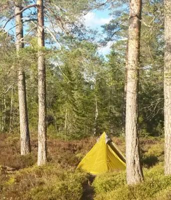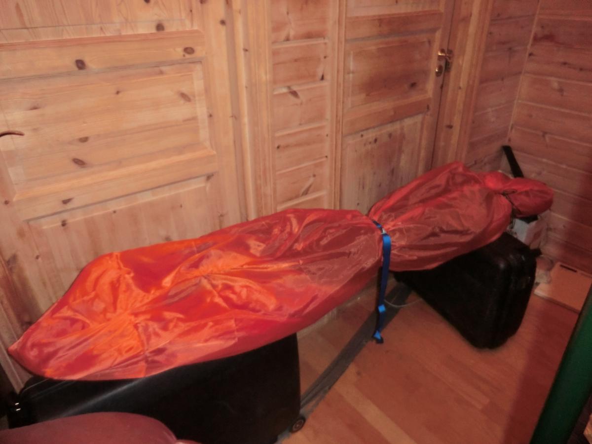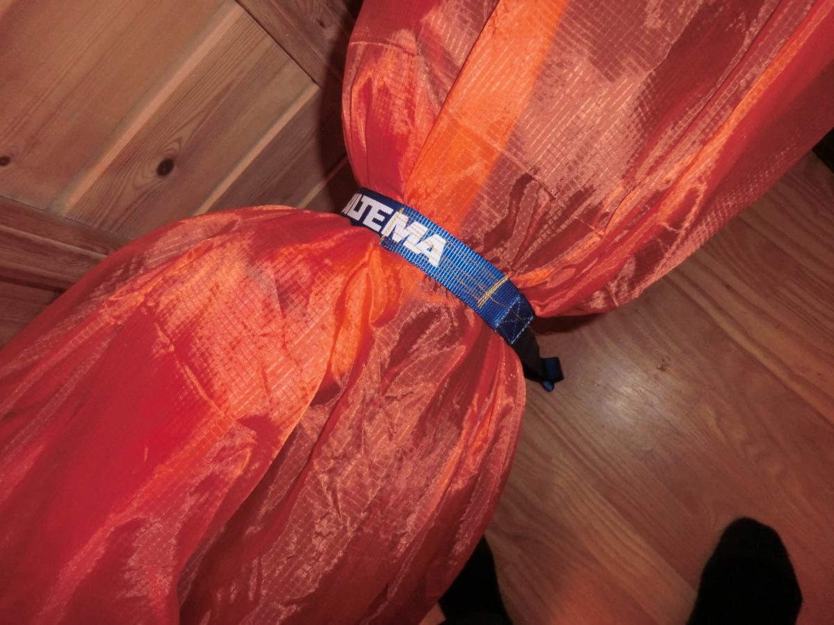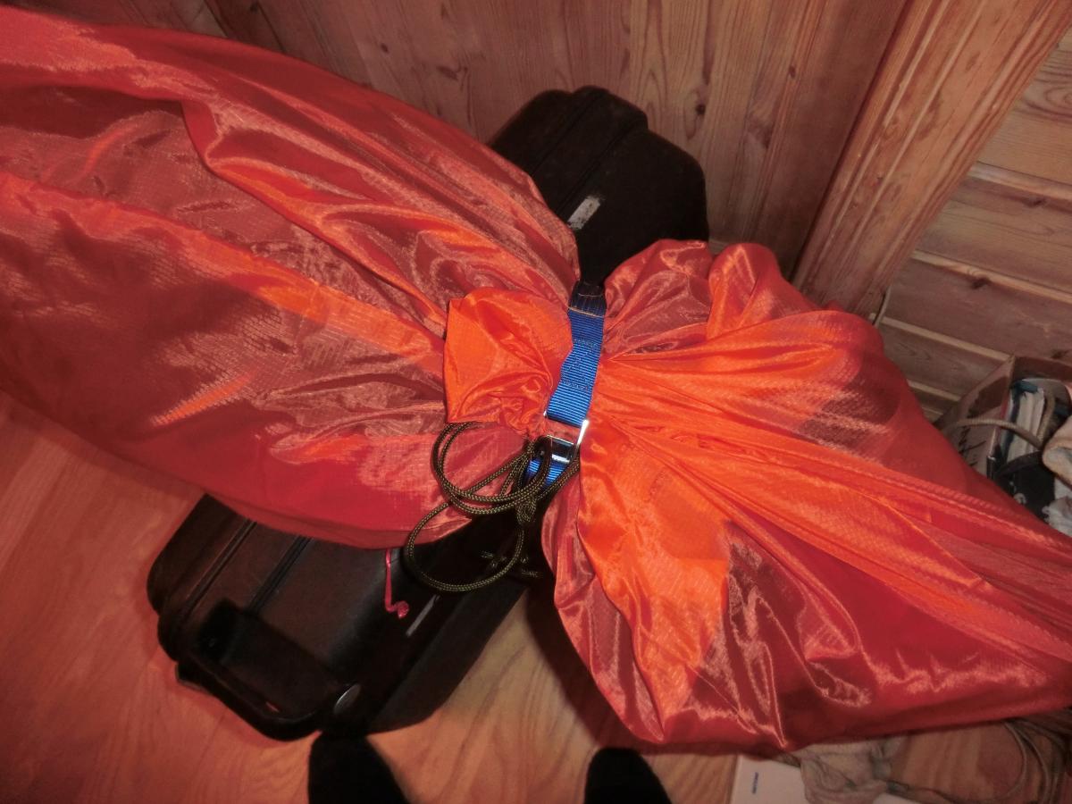 I høst kjøpte jeg meg ett Svalbard 3. I samme tidsrom ble det innvestert i en fjellpulken X-Country 144. En tanke ble født og ideen om å få laget en pulkpose for teltet ble gjort til virkelighet nå når snøen endelig kom. Deler: Fallskjermsduk fra England på 5m lengde. Av den ble omtrentlig 220cm kuttet av. Paracord. Kjøpte en trommel med dette tidligere så dette hadde jeg plenty av. Spennbånd fra Biltema for å kunne stramme inn posen. Sytråd Tot. kostnad for posen med stoff til overs ca. 150kr og har stoff nok til annet MYOG. Prosessen: Spennbånd fra Biltema ble sydd på det som ble antatt ideele plasser for dette. Noe herk å jobbe med dette stoffet da det er tynt, lett og samtidig vrir seg dermed lett. I enden der åpningen skulle være ble en tilstrekkelig lengde med paracord sydd inn slik at posen lett kan lukkes med denne. Resultatet etter sammensying og test med telt i posen er at enden kan foldes under øversete spennbånd og hjelper til med lukking av posen. Posen ble sydd langs med langsiden før egnet emne til bunn ble klippet ut og etter mye tankevirksomhet sydd fast i bunnen av posen som tilslutt ble vrengt og teltet stappa oppi. Posen ble sydd vid slik at teltet er lett å føre inn