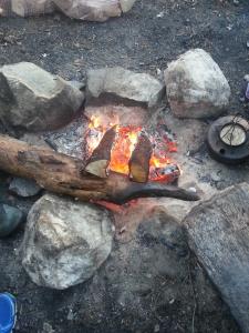 Brenneren min har tydeligvis etter mange års aktiv bruk fått såpass med avleiringer at den tetta seg helt denne turen. En total demontering og ett bad i en sterkt basisk løsning løsna opp gammal møkk. Hadde vært litt vanskelig å få fyr på tidligere, men hadde ikke gitt det videre tanke, men en måneds dvale for den etter innkjøp av en gassbrenner så fant ut at nå var tiden for å stoppe helt. Satt på lørdagen å prøvde da å få liv i "sliteren", men til ingen nytte da det er jo begrensa hva man har med av verktøy på en tur. Den i seg selv var såpass tett at selv det å prøve å blåse igjennom den med munnen viste seg fysisk umulig. Selv ikke forsøk med en kompressor ved hjemkomst ville løse problemet. Tankene vandret litt og kom på en løsning som kanskje ikke alle har benyttet seg av, men som igjen har en viss risiko forebundet med seg med tanke på "personskader". Selve brenneren nedstrippa ble lagt på "glass" og bada i kaustisk soda i flere timer. Lukter jævlig, men pokker meg så ren brenner etterpå . Hele helgen bar på hygge og det var vel mer eller mindre at jeg kunne glemme meg bort når det kom til hodelykta når man vandret bort for å hente ting å nyte ved bålet at noen fikk mitt lille fjernlys av en hodelykt mot seg. Det meste har blitt fortalt og den lille isgjennomgangen gikk uten problemer. Bare litt vann i kanten av støvla så sokka var tørre og føttene var varme. Isen ute på selve vannet og ikke i bekkeløpet var mer enn sterk nok til å bære en mann. Rensing av Nova+ . Innlagt primus Bålet på turen ga god varme og ble brukt til det meste