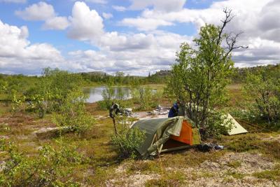 Tarp er med uansett på mine turer. Greit å ha med på dagsturer fra camp og som le mot vind og regn når jeg sitter ved vannet å fisker/nyter... Har kun ett Helsport Nordmarka2 å det er litt lite til å bevege seg i. Lys blir prioritert bort på denne turen. Vet ikke hva mat det blir ennda, men blir nokk en blanding av real og "vanlig" mat. Pasta, ris, potetmos, og diverse supper/nudler/gryter...