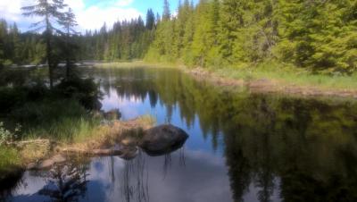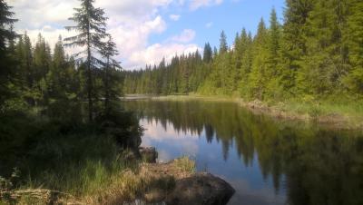 Fredag 03.07 etter jobb bestemte jeg meg for en liten sykkeltur med telt og fiskestenger. Dro rundt 17ish. Vel oppe på Bjørnholt klokka 18.30 spurte jeg de som driver stedet om de fortsatt holdt oppe (stenger normalt kl. 18.00). Joda, var åpent, og jeg fikk kjøpt meg en sånn kanelbolle og kaffe. Bjørnholt er ca. 8km inne i skogen og det er vel rundt 260høydemetre. Snakket litt med hun som driver Bjørnholt, og forklarte at det var godt de var åpne for mat hadde jeg ikke spist, og jaggu fikk jeg ikke en bolle gratis Rundt 20.30 var jeg fremme ved Katnosa, som ligger sånn ca. midt i nordmarka. Jeg har vært der en gang før med telt, og visste om et sted jeg trodde ville bli bra. Og jaggu var det fint. Frem med fiskestang og markboks (litt nedtur at den ene stanga viste seg å være fluestanga)... Men hadde én stang så på med mark mens jeg ordnet telt og husstell. Både jeg og myggen var sultne, og vi fikk alle mat! Jeg tok en kaffe og så på solnedgangen mens sauenes bjeller hørtes i det "fjerne". Katnosa gård ligger rett bortenfor, og jeg tror både en og to sau hadde seg i løpet av min lille tur. Masse vak, men jeg tror fisken har blitt doven av det varme været og det varme vannet, og de som var aktive ville hvertfall ikke ha mark eller krok fra en "sportsfisker". Dagen derpå våknet jeg til kjempevær. Fikk meg et lite bad, fisket og solte meg. Jeg kunne skimte en kano som la til ved en av øyene og en barnefamilie okkuperte Katnosa gård, ellers var jeg helt alene. Ingen fisk på denne turen, men mange fine opplevelser på den korte tiden jeg fikk være ute. Dro hjem på lørdag ettermiddag. Det er kjekt at selv så nærme Oslo har man relativt lite aktive områder hvor få færdes. På vei hjem kom jeg til en elv /utløp på veien mot Sandungen. Her så det utrolig fint ut å prøve seg med fluefiske, så flere vak (bilde 4,5 og 6). Hadde fluestanga med ved en feil, men både fluer og snelle var hjemme. Får bli en annen gang.