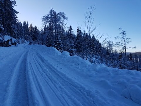 I det siste har det både vært regn og mildt vær, men i går skinte solen, temperaturen var rundt 0 og jeg tenkte at nå var det på tide å bruke min 29" terrengsykkel på skogsveiene i nordmarka i Oslo. Etter at transportetappen carl berner - hammern var unnagjort, var det på tide å starte eventyret. Det begynte med islagt grusvei, strødd de første hundre meterne. Møtte på et par gående med barnevogn, og selv om det var gruslagt slet de med å få feste. De ga nok opp når grusen forsvant, rett før bommen. Jeg fortsatte oppover veien som nå var helt islagt. Speilblank is gjorde meg utrygg, selv om jeg vet at dekkene mine er gode. Men det skal jo ikke mer enn noen ujevnheter til før dekket mister grepet. Av angst (eller mangel på erfaring) tok jeg på meg brodder og syklet uten å være klipset inn. Turen fortsatte oppover, og is ble til snø. Snø med to spor i, bilspor. Jeg fulgte bilsporene, fokuset var på å holde sporet. I starten lite snø, men etterhvert som høydemterne ble passert var det mer og mer snø i veien. Tok igjen en fyr med tynne dekk og bukkestyre. Jeg valgte å holde følge bak ham (var jo egentlig umulig å komme forbi). En ferd full av konsentrasjon om å holde seg unna snøen. Et par ganger ble han presset ukontrollert inn i snøen som bredte om seg på hver side av den lille stripen med is, men han klarte å få kontroll på sykkelen og vi syklet videre på den smale sti. Ved Bjørnholt slo jeg av en liten prat med mannen før jeg fortsatte mot Kikuthytta. Med blikket festet langt frem slik jeg lærte når jeg tok motorsykkellappen begynte jeg å få en bedre flyt og følelsen av kontroll. De få syklistene jeg møtte hilste og dette gjør man egentlig ikke her i marka. Men idag var ting annerledes og jeg tror alle følte på en stor mestringsfølelse, en slags begeistring over å mestre denne type sykling. Det gjør noe med humøret til folk, og alle blir vennlige og viser respekt til de man møter. jeg fortsatte ned en bratt bakke ned mot Bjørnesjøen. Blikket fortsatt langt frem, men snøen var uungåelig i de krappe svingene. Da er det bare å la styret gå sin egen vei og håpe at kreftene i beina skal få deg ut av snøen. Vel nede fra bakken møtte jeg på en skiløper som stusset over min ville ferd ned den ubrøyta bakken. Vi slo av en prat før jeg fortsatte til Kikutstua. I krysset fra Bjørnholt og Sandungen kom det et par fra retningen sandungen, de hadde Fatbikes. Men det så ut til at dette ikke var noe de trengte da veien var brøytet. Jeg holdt følge bak dem bort til Kikutstua, eller rett før hvor jeg passerte dem. Fant ut litt senere at de hadde elfatbike (så mye for den rolige turen). På bjørnholt var det både ski og sykkelentusiaster. Folk latet seg i solen, og for et øyeblikk så det ut som om coronaen ikke hadde kommet helt inn hit. Jeg valgte likevel å ikke sette meg ned men tok turen hjemover. Med fullt fokus på å holde det smale bilsporet kom jeg mer og mer i ett med veien, og nå når jeg sitter her får jeg en klump i halsen av å tenke på hvor flott det er å sykle på en ubrøytet vei.