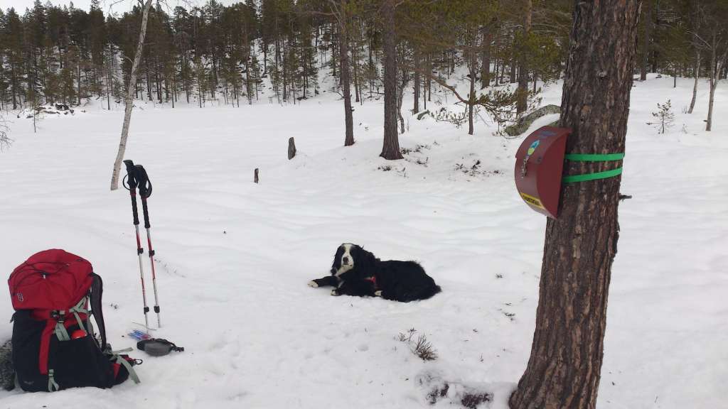 16. Hatt en kjempefin tur sammen med Teddygutten til Kyndilstjørni ( 673 moh ) - (Kaupanger) med ny turpost postkasse. Er en fin tur på ca 10 km . Godt å se våren nærmer seg og snøen smelter.