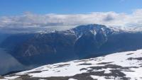 7. Hatt en kjempefin tur til Store Haugmelen (Kaupanger/Sogn og Fj.) i tett tåke og regn, var bare å hive på seg rett klær og legge i vei. Desverre var ikke det mye utsikt i dag gitt men legger ved noen vinterbilder som ble tatt i påsken i fjord så dere får se hvor fin utsikten er derfra i rett vær