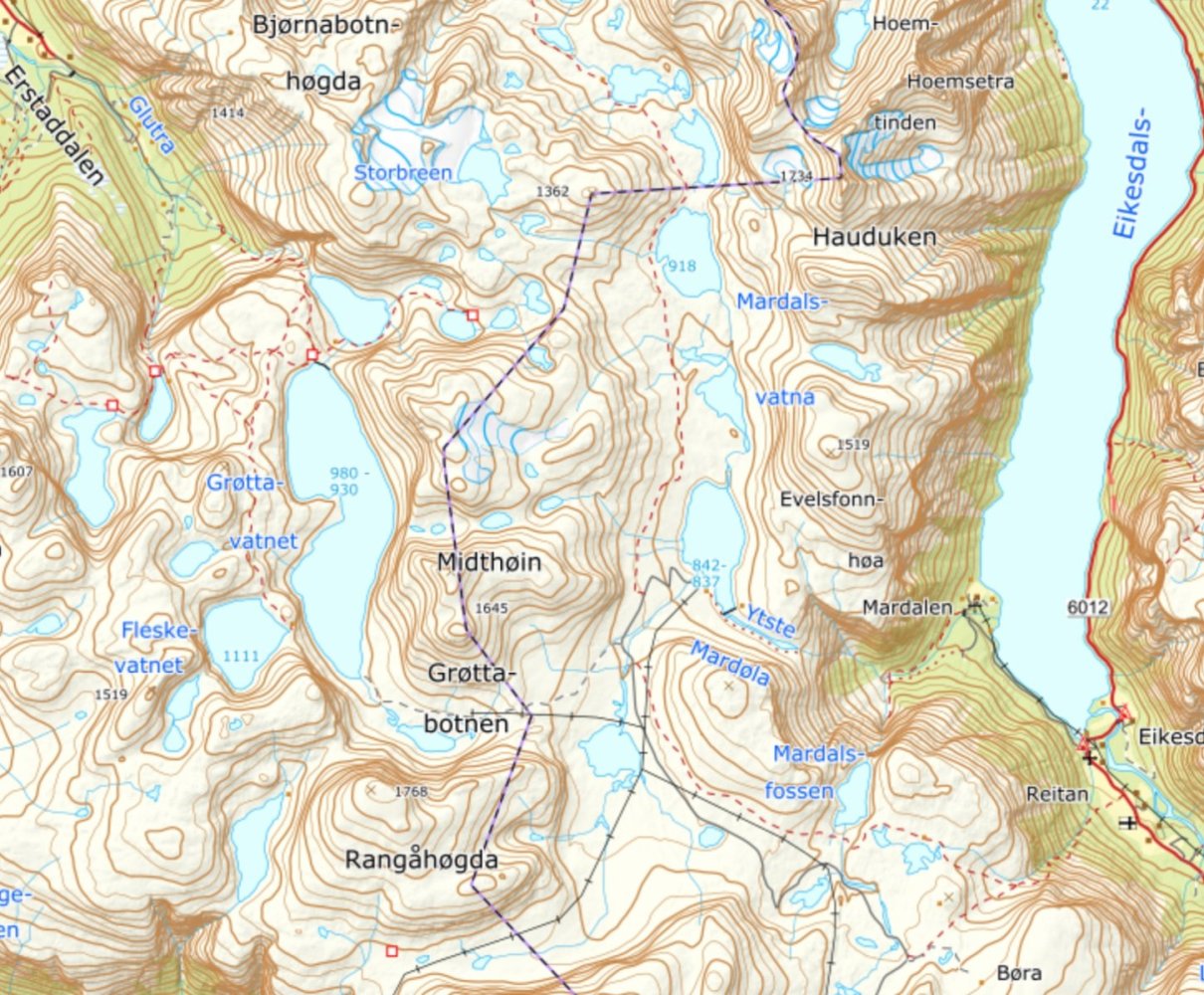 Annet tips er sandgrovbotnen, Mardølas kilder. Går bilvei inn, og det er korte distanser mellom vannene. Omtrent ingen folk i fjellet så snart du kommer et stykke unna veien. Hen fjellstyre har flere åpne buer i området. Fleskevassbu, Grytilbua, og Haudukhytta er tre flotte krypinn hvis regnet blir plagsomt. -