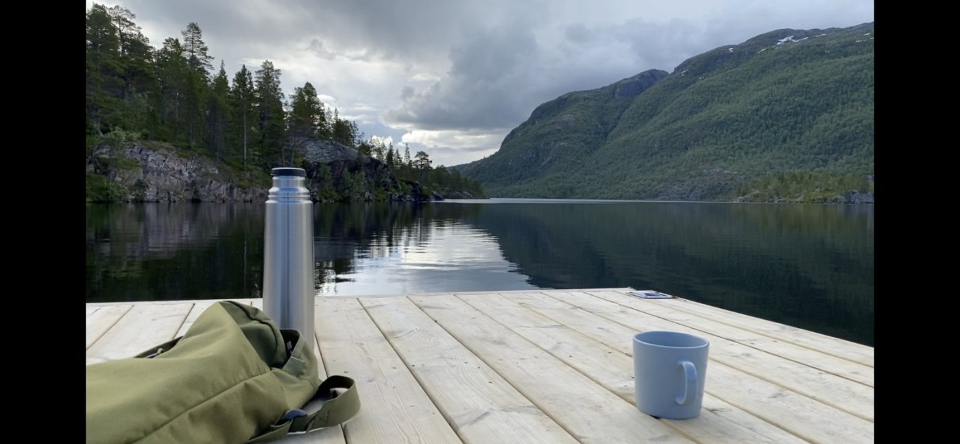Koke vannet og la det kjøle litt før det fylles i et 3 liters „Camelbak“ drikkesystem. Bildet er fra en dagstur i Alta Finnmark på våren, men jeg er ikke like flink med kaffen som bare fylles i en termokopp på bensinstasjonen rett før turen.