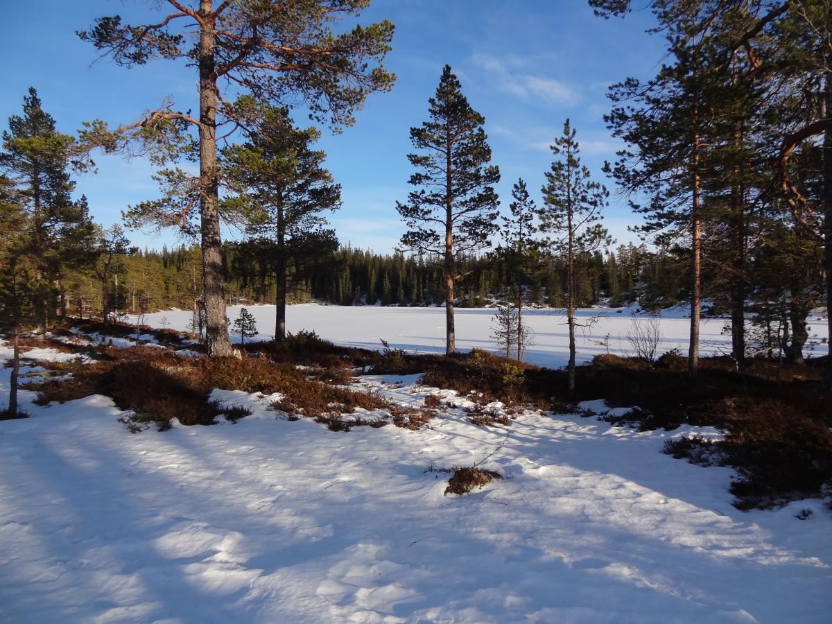 Noen uker på overtid ble det endelig tur. Kjørte til Brøttem i strålende sol på lørdag formiddag. Etter mye grubling valgte jeg å la skiene ligge i bilen og ta beina fatt, noe som viste seg å være et greit valg. Gikk strake veien opp skogsveien, her var det veldig vekslende med is i noen partier og helt bar mark i andre partier. Oppe på "platået" var det skareføre med mye barmark innimellom. Man kunne nok tatt seg frem på ski her, men snøen bar godt og det var helt fint å gå uten. Traff tilsammen seks personer, ingen hadde ski, men så spor av skigåere også. Våknet søndag til grått vær og mye vind, føret på hjemveien i dag var litt våtere med litt mer gjennomslag enn i går, men fremdeles uproblematisk å ta seg frem til fots. Skogsveien ned var lumsk - det ble ett fall, men lårhalsen er intakt enn så lenge Pigger anbefales. Bildet er tatt ved Turtjønna, solid og trygg is.