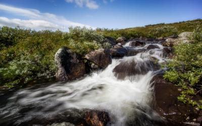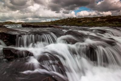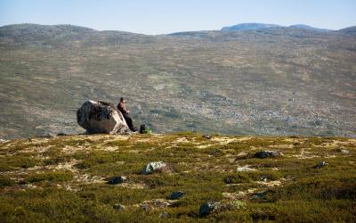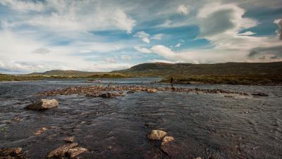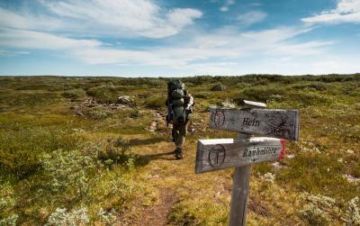 Hardangervidda - Hein Den årlige turen i august gikk til Hein i år, kjent for sine lange elvestrekninger og godt ørretfiske. I forkant av turen ruvet høytrykksryggen over skandinavia med solskinn og varmegrader i ukesvis, mens lavtrykket lå uti havet og ventet tålmodig på at høytrykkskjempen skulle svekkes i styrke slik at den kunne komme til og dynge ned med regn og gråvær inn over landet vårt. Vi krysset fingrene og fulgte med på yr.no hver eneste dag for å se om det skulle komme noen forandringer i værsituasjonen. Vi var spente, kunne vi være så heldig å få en hel uke med sol og godvær? Tidlig om morran slenger vi sekkene inn i VW Passat`en til Christian og durer på oppover mot Geilo før vi svinger av vestover til Halne, der skal vi ta båten Halnekongen klokken 13:00 over Halnefjorden og inn til siste stopp ved Sleipa. Vel fremme parkerer vi bilen og tar oss en rast på Halne Fjellstove, deilig å være på tur igjen Blide herremenn venter på Halnekongen Ved brygga i Halne Båten går presist klokka ett og det er mange som skal på tur idag, folk i alle aldre fyller opp dekket. Det er nydelig vær og varmt i lufta, vi sitter ute helt foran og nyter båtturen til en og annen frisk sjøsprøyt i ansiktet. Etter ca. tre kvarter er vi i land og pakning er på, klare for noen timer på beina inn til Heinseter hvor vi garantert har lyst på en kald pils i solveggen. Etterhvert som vi kommer litt opp i terrenget rett nord for Seltjønnutan, er det en flott utsikt til Øvre Hein og Heintjønne. Vi stopper for en pust i bakken og en halv ei med vann, herlig vær å være på tur i da gitt ! Vel nede ved Heinseter er det endel folk som koser seg, det er lørdag og helgturistene har inntatt turisthytta. Vi hiver av sekkene ved inngangen og får oss en kald halvliter, den smaker fantastisk etter noen timer med tung sekk Vi slår av en prat med noen hyggelig karer fra Kragerø som sitter å nyter et glass og det er god stemning på Heinseter denne lørdagen. Men vi skal ikke være her, så vi hiver på sekkene og går videre nedover Heinelva i retning Nedre Hein før vi finner en plass for lavvoen. Her oppdager vi et lite problem som de fleste turfolk møter til tider om sommeren, Knott og mygg.. Og ikke få, milliarder av dem (om ikke mer) samler seg rundt hodene våre og lager denne kvelden til en litt brysom affære. Vi banker ned lavvoen i en fart og kaster oss inn under duken og snurper igjen, vi smører oss inn med Mygga og knerter de resterende knott som ble med inn i lavvoen. Vi lager oss middag inne og håper på at det kommer litt mer vind slik at knotten vil roe seg ned, for vi er klare for prøve fiskelykken i elva. Mette i magen og med nytt mot stikker vi ut og småløper ned til elva med knottsvermen som fremdeles er tilstedeværende etter oss. Vi fisker en times tid uten resultat før vi blir lei av blodsugende insekter og konstant vifting med armene etter de små krypene, natten kommer tidlig og vi faller i søvn i posen. Morgenen etter er det mer litt mer vind og knotten er ikke like gæern, vi har tenkt til å ta oss en tur ned mot Geitsjøen og til Djupa for å se om ørreten er tilstede i kulpene der nede. Dagstursekken pakkes og vi labber avsted over fjellet Utsikt til nedre Hein Fluehuet tar seg en pause ved Heinberget Over kneika kommer den mektige Geitsjøen til syne, det blåser friskt rett imot og det er godt å slippe knotten. Vi ser Djupa langt der nede og det rykker i fiskestengene, sola skinner fra en skyfri himmel og livet er helt greit på vidda. Gutta speider ned mot elven Djupa med sine forlokkende små kulper Vi finner en nydelig plass rett ved elva og lager istand lunch, Hardangervidda viser seg fra sin beste side og det er bare å hygge seg på tur. Sauer er det forresten nok av i området. Etter mat er det ned til elva og piske ut noen fluer som forhåpentligvis vil lokke prikkepetter til hugg, Christian får napp på andre kastet og kjører iland en nydelig halvkilos fjellørret Vi fisker og koser oss hele dagen før det blir retur til camp. Rimelig slitne i beina etter et noen mil i fjellstøvlene, vi lager oss mat og etterpå kryper vi ned i posen. Vi tar noen parti sjakk og drikker et par edle dråper før det er kvelden. De neste dagene går med til å utforske området rundt med og uten fiskestang, går lange turer og kaster på noen vak her og der. Været holder seg noen dager før det blir gråere og det går mot våtere tider. Vi blir enig om å flytte campen lenger opp mot Heinseter slik at vi kan krype inn under tak og slå ihjel noen timer der inne mens uværet pågår. Magnus prøver fiskelykken i Heinelva Mye vann i Heinelva etter noen dager med regn Mens regnet hamrer ned over lavvoen rusler vi inn på turisthytta, vi finner oss tilrette med brettspill og yatzy inne i varmen. Vinden uler og dråpene renner nedover vinduet, greit å roen ned her inne på en dag som dette. Dagen etter er det opphold og vi kan skimte en blå himmel i horisonten, vinden er akkurat nok til holde knotten unna. Ikke gæernt dette her tenker jeg, med tanke på hva som var meldt. Meg og Magnus blir enig om å ta turen opp over Albrektnuten og utforske området der oppe med Bleiketjønnan som første stopp, og følge Albrektsbekken på vei ned igjen til Kristofferhølen og Heinelva som fiskeplass. Christian er usikker på været så han går for å fiske i elva idag. Skyene sprekker opp etter møkkaværet Magnus prøver å reparere et skilt oppe ved nuten med utsikt ned til Heinelva En fluefisker rusler langs bekken Og slik gikk dagene her inne på Hein i en snau uke, vi hadde egentlig planer om å dra til Haukelifjell i år men pga. den lange vinteren og snømengdene i år så ble Hein valgt som destinasjon til slutt. Ørretfiske hadde vært dårlig for mange andre som vi møtte der inne, og alle kunne fortelle om magre fangster på rundt halvkiloen. Været var veldig bra, selv om det ble noen regntunge dager med kuling i kastene. Det ble en minner