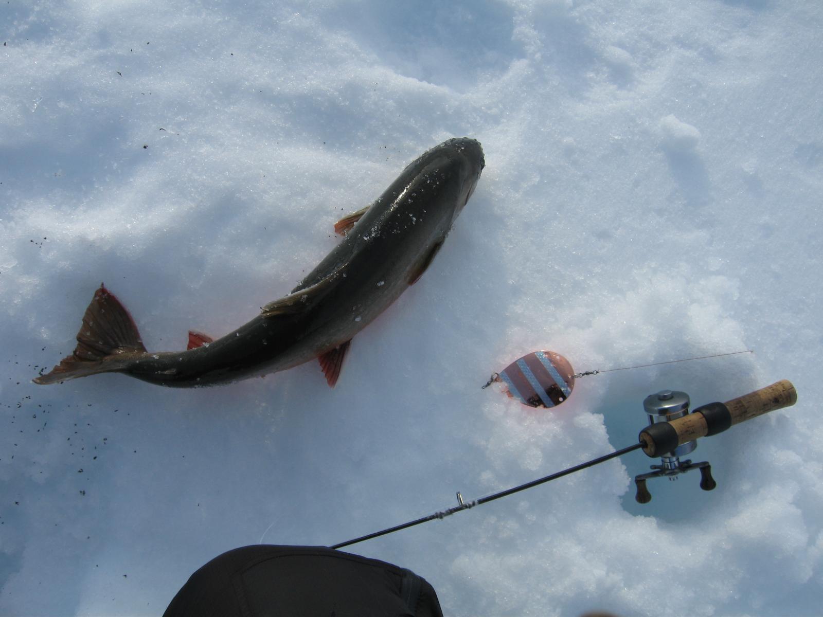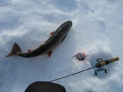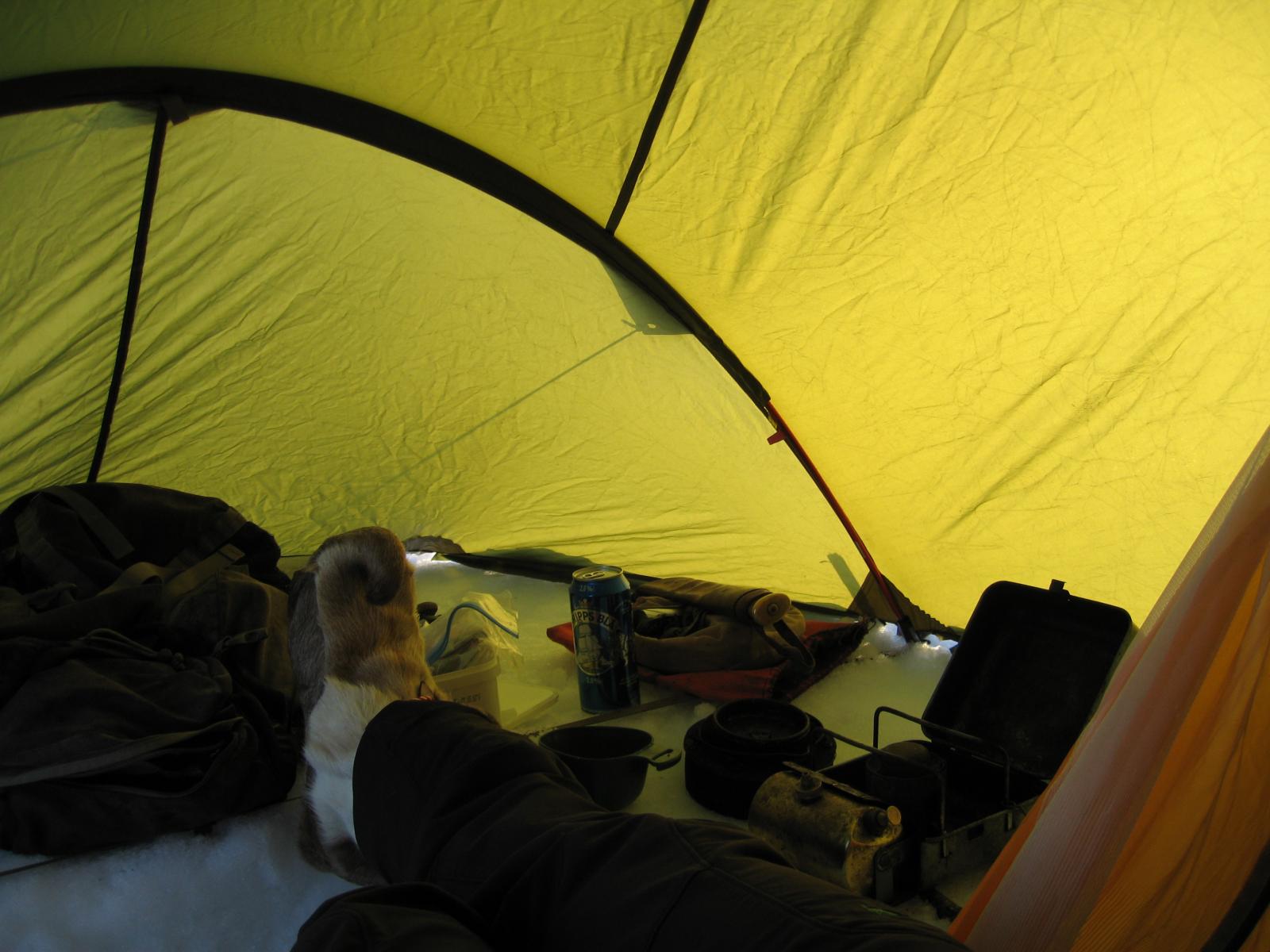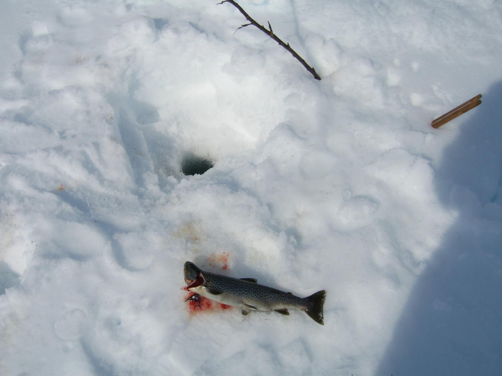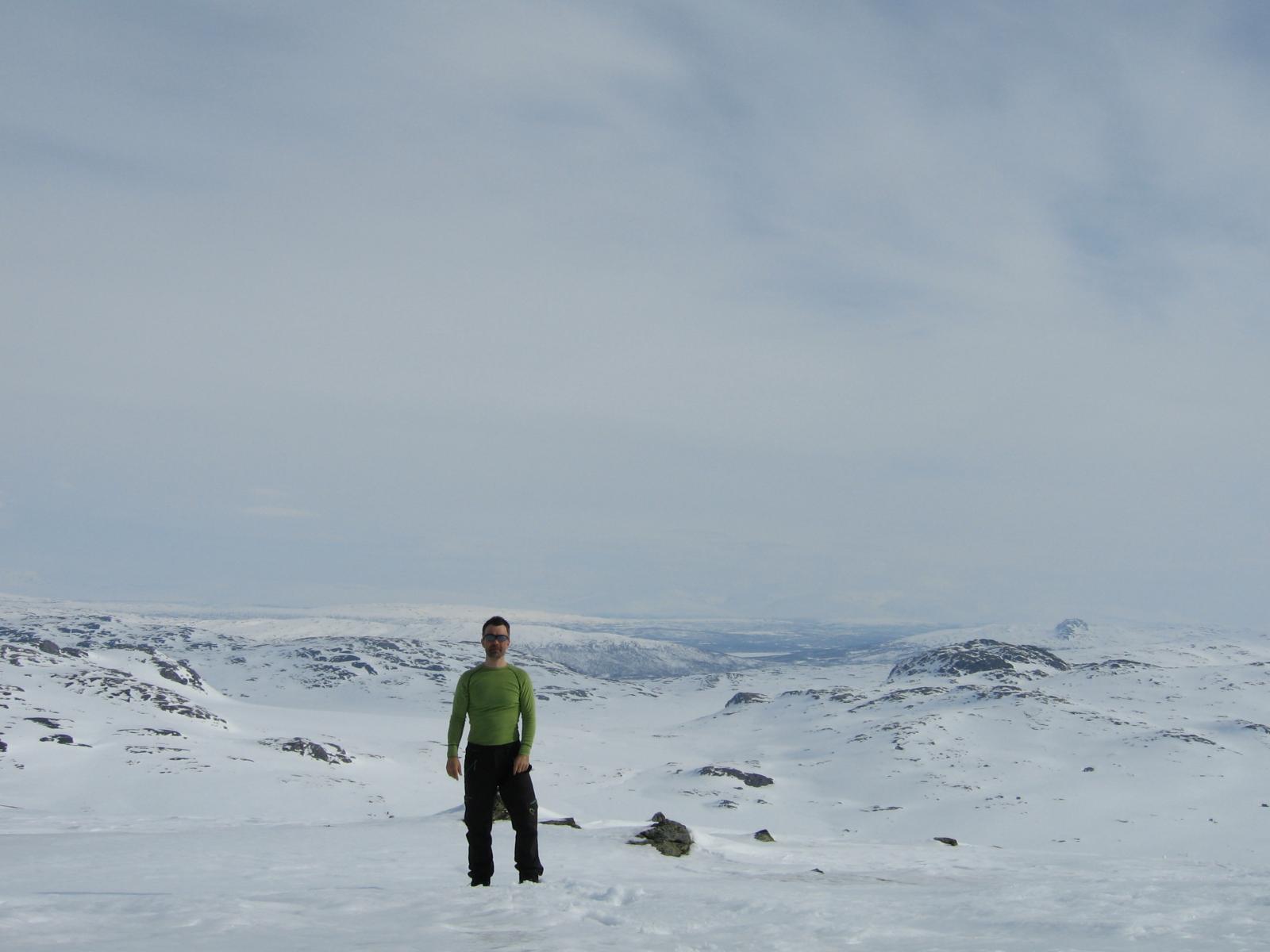 Som ivrig leser på fjellforum føler jeg at det også er på tide at jeg legger ut en liten turrapport. Det er jo flotte områder jeg ferdes i så de fortjener å vises . Kort fortalt så stakk jeg rett fra jobb sist fredag og til fjells,og med kurs for grensefjellene. Jeg hadde halvannen times kjøretur,og et par-tre timers skitur foran meg før jeg var ved den tjønna jeg hadde tenkt å campe ved. Buster og gammelpulken. Et rypepar hilste oss velkommen Fantastisk fint vær,føre og teltplass. Fredagskvelden gikk med til å bore hull og sette ut snører,og jaggu fikk jeg ikke fisk også og fisk er jo mat,ergo ble det stekt fisk til kveldsmat. Lørdagen startet med å sjekke snørene og ta av et par ørreter. Etter frokost ble det en to og en halv times skitur i området,i sol og vindstille. Midt på dagen lå jeg stort sett og døste utefor teltet. På kvelden ble det en ny lang skitur på toppene i området. Denne karen var ikke langt unna De gamle fjellskiene funka bra i slushen. Lørdagsmiddagen Noe av fangsten Denne kilosrøya slapp jeg tilbake da den var krøket i sporden. Den var i tillegg ikke kommet helt i form etter gytingen og så litt slapp i "fisken"ut. På søndag våknet jeg til skodde,en skodde som holdte seg helt til i tolvtia,men da titta sola frem. Da pakket jeg sammen,og gikk til et annet vann for å prøve fiskelykken noen timer før jeg satte kursen hjem. Oppsummering: Vindstille,rundt null grader,sol,turboføre,rypekakling døgnet rundt,og bra fiske. Man føler seg rik når man får slike opplevelser