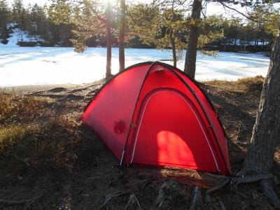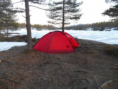 Går til jeg er go'sliten, slår opp teltet, lager mat og sovner..