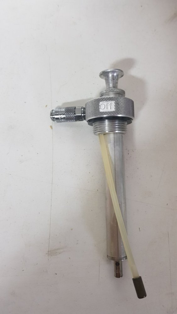 17. Har en Optimus Nova kjøpt i 2005 som lekker bensin når slangen koples fra og når slangen er frakoplet. Dvs at hurtigkoplingen lekker når slangen ikke er koplet til. Ser på de nyere modellene at de leveres med en ventil mellom hurtigkoplingen og pumpen. Flere som har opplevd dette? Har ikke demontert hurtigkoplingen. Når slangen er fjernet fra pumpen forblir hurtigkoplingen i bakre stilling (som på bildet), er det normalt? Andre slike hurtigkoplinger pleier å gå frem igjen når slangen er fjernet..