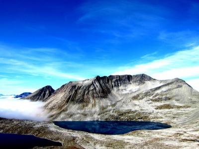 Fra en tur i Trollheimen i fjord høst. Startet fra Storlidalen, telt i Kråkbotnen, og Namnlausfjellet dagen etter. Våknet til tykk tåke, men med fantastisk vær over 1200m. På bildet ses Storsomrungnebba og Storsomrungvatnet. -