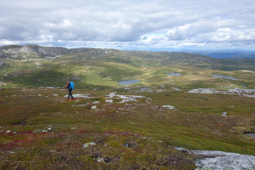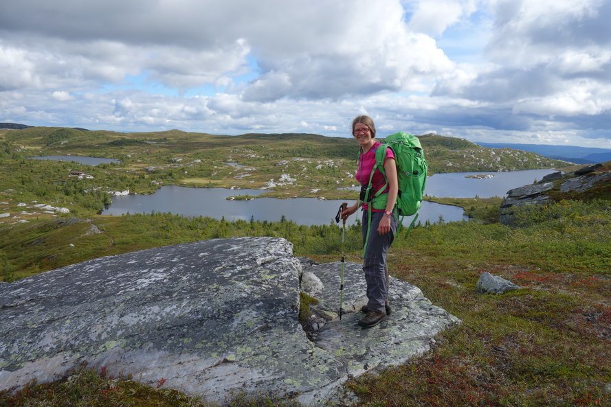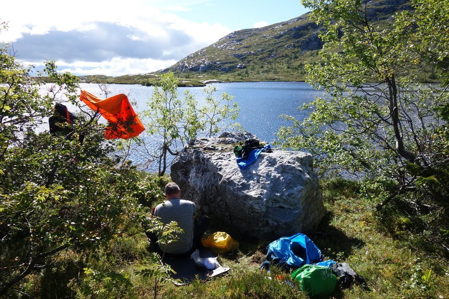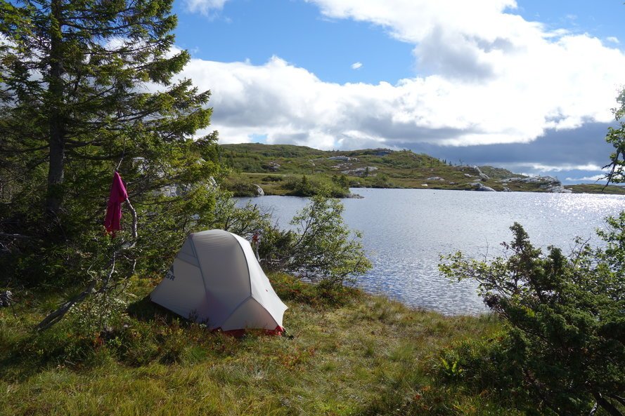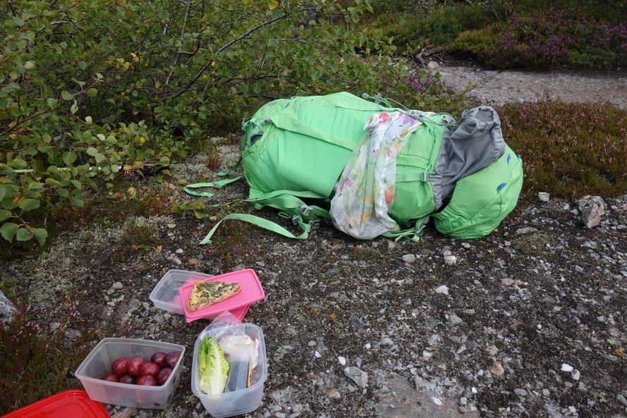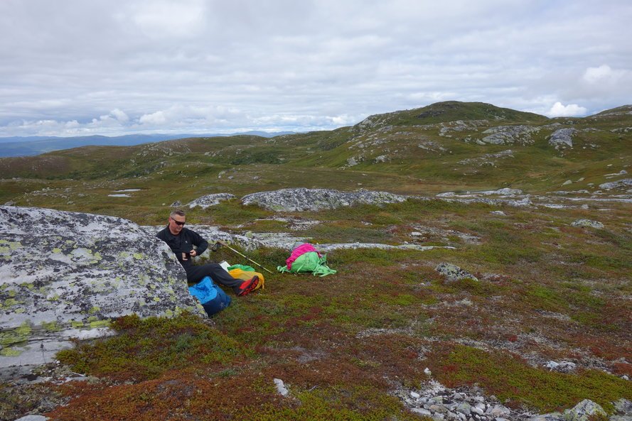 Tross flere meldte seg ble det bare @Blaser som egentlig var klar til å gå på tur på fredag kveld. Treff begynte egentlig da på lørdag kl 11:30 på Kongsberg stasjon hvor jeg møtet @Blaser, og @Xperiment med andre venner. Vi splittet i 2: Jeg og @Blaser ville på tur hele ettermiddagen mens @Xperiment og vennene sine hadde andre plan og hadde tenkt å gå på Eriksbu på kveld. Så ble vi enige i å treffe i Eriksbu område på kveld. Etter en liten bil-tur-"sightseeing" var vi klare å gå...(for de som lurer på hvorfor ble det bil-sightseiing: parkeringsplassen for å gå til Eriksbu er veldig langt fra parkeringsplass til å gå til Sigridsbu). Men til slutt var vi klare å gå på den riktige stien! Opprinnelig tema for treffet var "letttreff". Blaser var egentlig veldig lettpakket mens jeg derimot...var "raskpakket" (brukte 30 min til å pakke sekken!). Plommer, hjemmelaget "pie", ekte ost og salat var med meg 😄. Om ikke "lett-pakket", var jeg tross alt, "lettere-pakket" enn vanlig siden: jeg hadde ikke solkrem og hadde ikke ellers min favoritt fleecejakke og ikke ellers min regnkåpe. Det var rørsopp, multebær og blåbær å plukke på veien opp. Været holdet seg fint mest av veien, og det ble bare små regndråpe. Vi gikk forbi Eriksbu og fant et fint sted i ly til å slå opp telt/bivi. Så spiste vi middag med innsjøutsikt. Blaser hadde med seg en mini-holder med 4 typer krydder. Jeg brukte en smøresopp til å gi smakk til potetmos (egentlig smakte soppen ikke så mye etter at jeg koket det i vannet...hadde ikke noe smør til å stekke sopp ordentlig). Senere på kveld møtet vi @Xperiment og vennene sine på hytte. De var "god-mat pakket" med gode pølser, grønnsaker-salat. Hyggelig prat med en blanding av språk. Overnatting utendørs gikk fint. Blaser var veldig fornøyd med sin bivisekk som fungerte bra tross litt småregn. Tidlig badet jeg på innsjøen (det var deilig kaldt men ikke alt for kaldt, og deilig å krympe igjen i dynesovepose etterpå). Vi spiste frokost (ikke noe egg og baccon!). Så pakket vi utstyr. Da vi kom på hytte var hytten tom og @Xperiment hadde allerede dratt. Vi gikk en tur på stien i retningen til Sigrigsbu, spiste en del multebær på veien, og gikk utenfor stien for å nytte bedre utsikten. Det var veldig fint! Så ble det tid til å komme tilbake til bilen. Det var en fint treff og jeg synes at Blefjell passer veldig bra for flere treff! Takk for turen!
