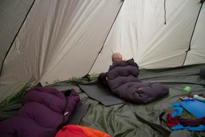 Hei angående det med kulde og barna ute. Veldig mange har barna sovende ute i vogna på dagen når det er under null grader. Når det er under minus 10 anbefalles det vel ikke, men hva er forskjellen? I teltet er det lunt og stort sett varmere en på utsiden. Når vi varpå tur var det rundt 5 grader tipper jeg. Gutta hadde sommersoveposer (står comf 0 grader), ullbody, stilongs og en hjemmestrikket ulldress. De var gode og varme hele tiden. Jeg har også brukt Voksiposen som vi bruker i vogna tidligere i våres og sommer, men den ble nesten for varm. Har de vokst fra vognposene må man jo kjøpe noe evt bruke sommerposen inni en annen, kanskje en voksenpose til vinterbruk?? Det krever litt tilvenning med sovepose for noen hvis de rører mye på seg om natta. blir kaldt hvis de kryper ut... Rent sovemessig har jeg ikke noe problem (teori ikke utført i praksis) med å sove ute ned mot minus 10 med barna på 2-3 år. Utfordringen ligger nok i påkledning i våken tilstand, men det blir som å være ute ellers. Tenk ut litt aktiviteter som kan gjennomføres utenfor og inne i teltet tilpasset temperaturen. Vil anbefalle et program på NRK som heter villmarksbarna. Der kan man hente mye inspirasjon og se at begrensningene ofte ligger på oss og vår fantasi og hvor mye vi legger i det. http://tv.nrk.no/serie/villmarksbarna/MSUE10003113/sesong-1/episode-1