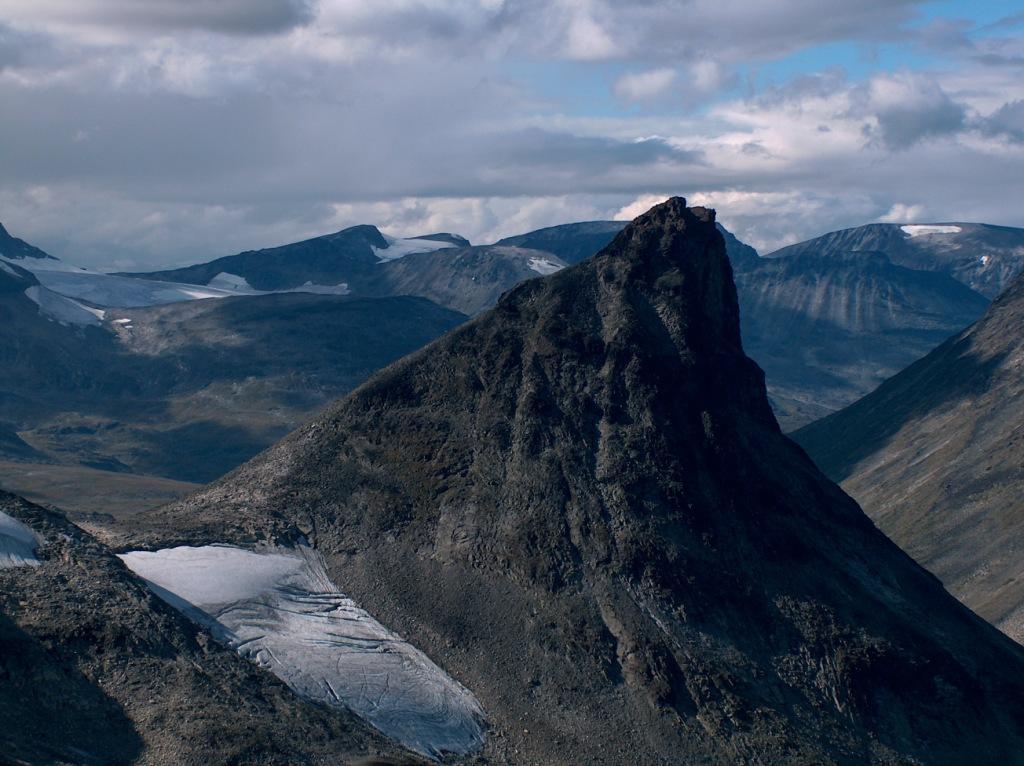her kan du kanskje se primærtoppen til venstre og sekundær toppen litt ned til høyre. Her er det ganske bratt ned og opp igjen til den andre toppen. Jeg syntes det i allefall det så skummelt ut på min første 2k topptur.