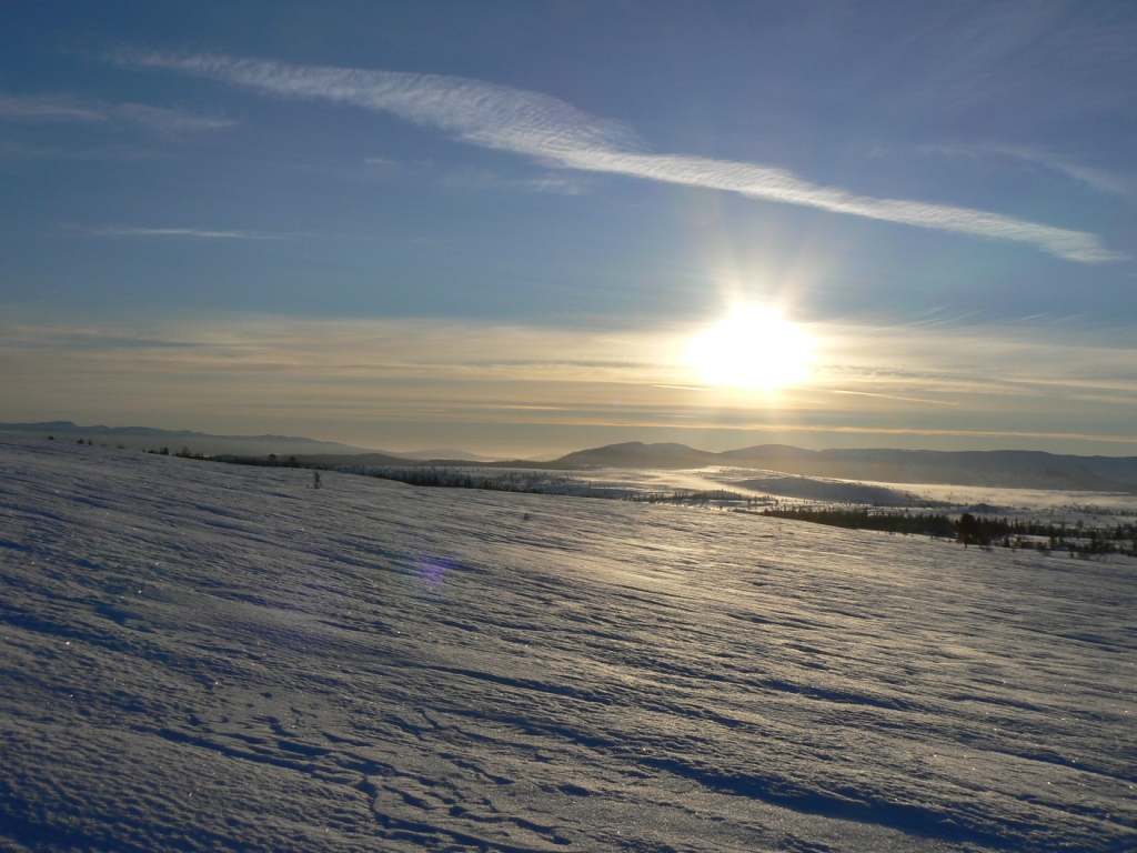 var på tur i området nord for trysil for en uke siden og der var det over 50 cm snø. Sørenden av femunden ligger omtrent 6-7 mil nord så noe forskjell kan det vel være, men av den utsikten vi hadde nordover så det ut som det var godt med snø på viddene. Legger ved noen bilder som er tatt omtrent rett nordover.