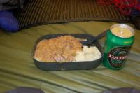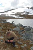 9. Første fjellturen sammen med samboeren. Vi kjørte fra Trondheim til Langoddsætra etter jobb på fredag, tok på oss ryggsekkene og satte i mars oppover langs Engelsbekken, det var en seig tur oppover etter ei lang uke på jobb, og det hjalp ikke stort på at det var vått og tåkete, men vi kom da frem etterhvert. Etter litt leting fant vi en grei teltplass og fikk opp vårt nyinnkjøpte telt (den første "tingen" vi kjøpte sammen) Det var egentlig bare å få i seg litt mat før vi fant soveposene, slitne var vi ihvertfall. Lørdagen våknet vi opp til bedre vær, men vi fant ut at vi droppet toppturen til Okla som vi hadde i tankene, det er lenge siden vi begge har vært på skikkelige fjellturer, så vi var enda litt slitne etter gårdagen. Det var også godt å nyte det å være borte fra sivilisasjonen og bare nyte fjellet. Korgtjønna med Blåhøa i bakgrunnen. Lørdagsgodt måtte vi ha med Da var det faktisk bedre å bare sløve rundt teltet og fiske litt innimellom. Noe som ikke var meg i mot Fisk så vi, men de var ikke særlig bitevillige, men jeg fikk en fin ørret på rød/kobber spinner. Sluker og mark fristet ikke ørreten. Utpå kvelden kom regnet sigende og det blåste litt samtidig, så et aldri så lite herremåltid ble inntatt innendørs, og selv jeg må innrømme at posemat er godt innimellom. Søndagen startet vi tidlig på hjemturen siden det var meldt en del regn utover dagen, men vi måtte nyte finværet littegrann før vi dro. Men finvær fikk være finvær, det er så mye greiere å pakke sakene i sol enn i regn. Og jammen fikk vi ikke en aldri så liten haglbyge på vei nedover, så værmessig fikk vi oppleve det meste denne helga. Verdens beste middag ble oppservert både på vei opp og på vei ned, og utifra mengden rypeskit å dømme kan det ikke ha vært ekstremt lite rype i fjellet i vinter. Eller så har jeg funnet ut hvor de var Skal sies at vi så ikke mye ryper, men en Stegg på vei oppover og et rypepar? på vei nedover. Vinteren har ikke sluppet helt taket nede i lirypelandet heller. Dette var vår første fjelltur sammen, og definitivt ikke den siste. Dette var også min første turrapport her inne, så får tiden vise om det blir flere.