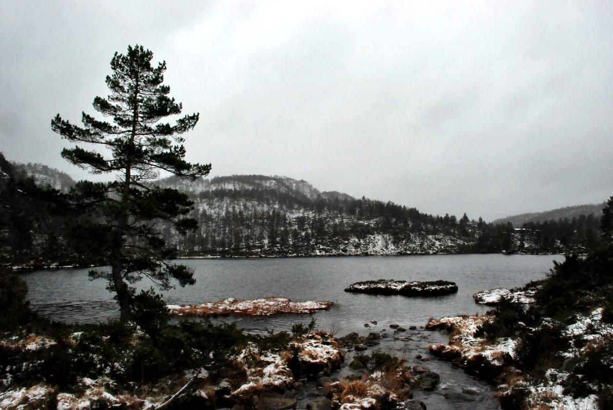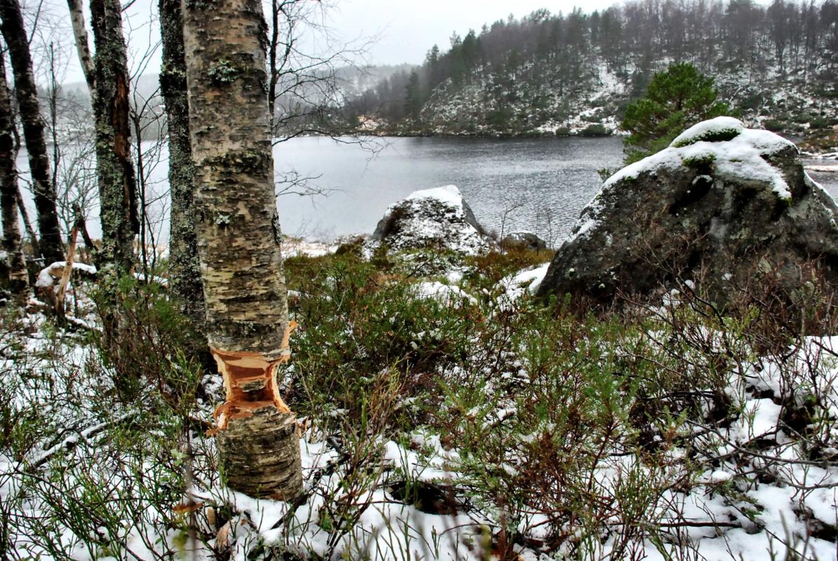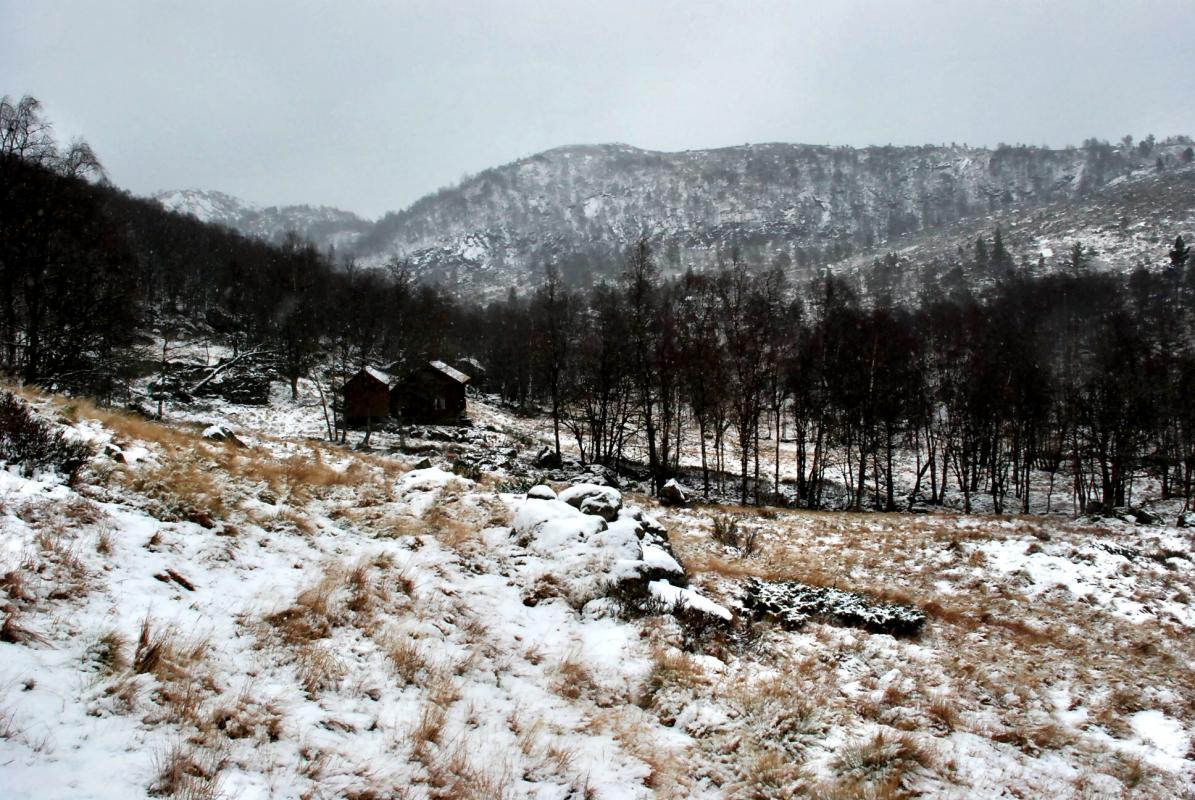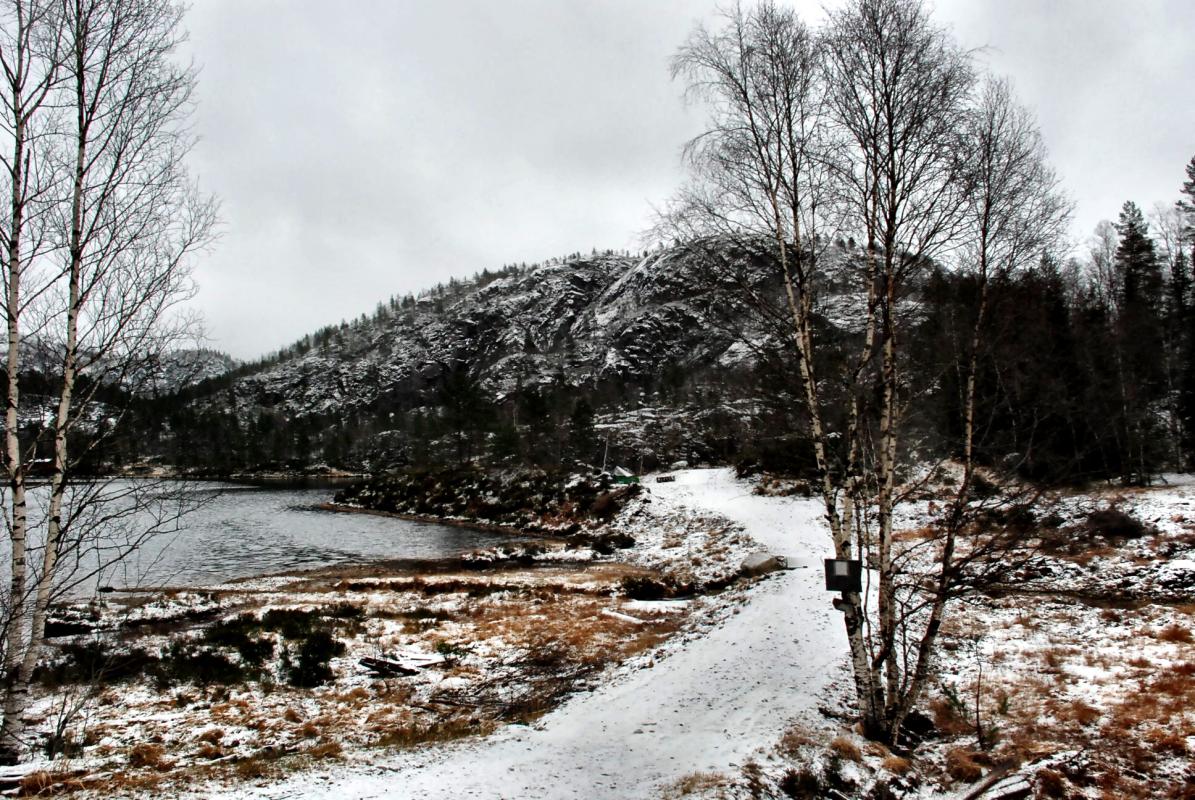 Det ble en lang kjøretur for Søndagsturens utflukt denne gangen, helt til Lund kommune og i nærheten av Bjørnestad skitrekk. Et par kilometer før jeg var fremme var det snø i luften, på bakken og som slaps på veien. Så vel fremme var det bare å sæla på med litt varmt og vannavvisende tøy og traske avgårde i lett snøfall og 4 grader. Dette er et område jeg ikke har vært i før og selv om været ikke gjorde sitt til at området kanskje fremsto på sitt beste, ser jeg absolutt potensialet her til flere turer, ettersom snøen legger seg skikkelig, eller når våren og sommeren kommer. Det er nok en nydelig plass. Langs ruta var det flere dyrespor og beveren hadde nok funnet "sitt" vann der oppe ved Nedre Sandtjørna, for der var det felt et utall trær. Hadde jeg hatt litt bedre tid skulle jeg ha fyrt opp et bål ved et av vannene eller inni skogen, men det får bli neste gang. Ellers er det verdt å nevne at turen nok ikke tar 5 timer uten stopp, som UT.no sier, da heller litt over 2 timer, får vel sende en feilmelding inn der for det var en i overkant grov feil God tur! Link til turen på UT.no og en Link fra Friluftsrådet i Dalene som sier litt mer om området og stølene.