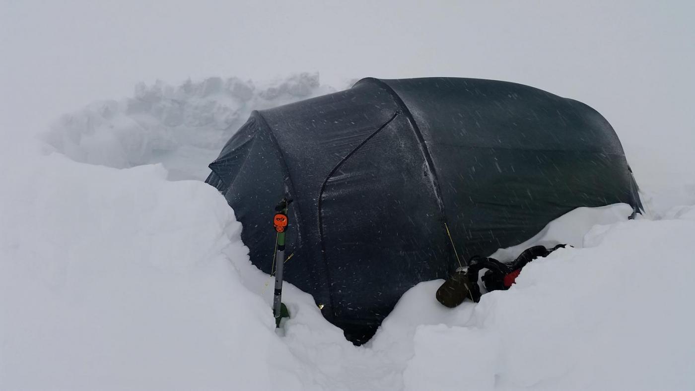 Ja, liten oppakning, sekken inne i teltet, rask koking av vann i innerteltet nok til en posemat og så i soveposen før toppstøtet neste dag. Det kan kanskje være en relevant brukssituasjon. Det kommer en test av Reinsfjell xtrem etterhvert.