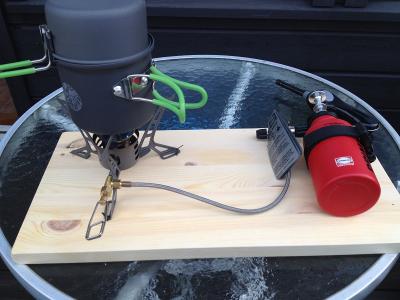 Da har jeg fått laget meg en plate til primusen. Ble en furuplate i første omgang da det ikke var så enkelt som tiltenkt å få tak i en krysfinerplate uten å måtte kjøpe 2x4 meter. Fristet nesten å kjøpe en liten kommode på ikea bare for å få platen. Men for erstatte med en lettere kryssfinerplate siden, kom vel før eller senere over en. Testet primusen litt også. 2 minutt og 40 sekund på 0,4 liter vann, det er litt lengre enn lovnaden til primus, men så brukte jeg ikke ETA kjele heller da. Hvor mye bensin slipper dere forresten ut til forvarming? Stod 2 sekund i bruksanvisning, men virker som det er litt lite til vinteren og den blir ikke skikkelig varm på så lite. -