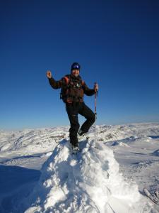 Tidliggere i uken så det ut på værmeldingen som det kunne bli mulighet for en topptur på søndagen. Med snø hele uken var det meldt opphold og 5-7 ms. Planer ble lagt og søndagen ankom. Det som møtte oss var totalt vindstille, ikke et sky på himmelen og 20-30 cm pudder. Helt fantastisk! Stavsnuten er en lett og kort tur. Ca 4 km til toppen og rett under 600 høydemeter når man går fra Haukelitunnelen. Turen oppover gikk også meget fint, kjente litt i beina at det er litt andre muskler som brukes på ski enn til fots, men med en slik ramme på turen er det bare godt å kjenne at beina må arbeide litt. Selv helt oppe på toppen på 1661 moh var det ikke et vindpust og vi kunne nyte matpakken med utsikt over hele Hardangervidda. Endelig er vinteren i gang