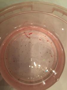 Da har jeg tatt en gjennomblåsing av systemet. Og er "nede" i 7 1/2 minutt igjen (gadd ikke flere tester).....Som vedlagte bilde antyder er det god grunn til å mistenke tett drivstoffilter (røde malingsflak fra flaska og bittesmå metallpartikler + anna grums)......og hvordan renser man så det?