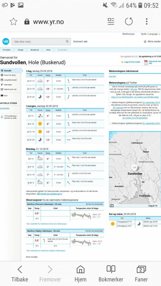 https://m.nettavisen.no/nyheter/innenriks/ny-tjeneste-viser-om-nedbren-er-pa-vei-mot-deg/3423542188.html Artikkel med info om radaranimasjonen frem i tid i Nettavisen.- 3 svar