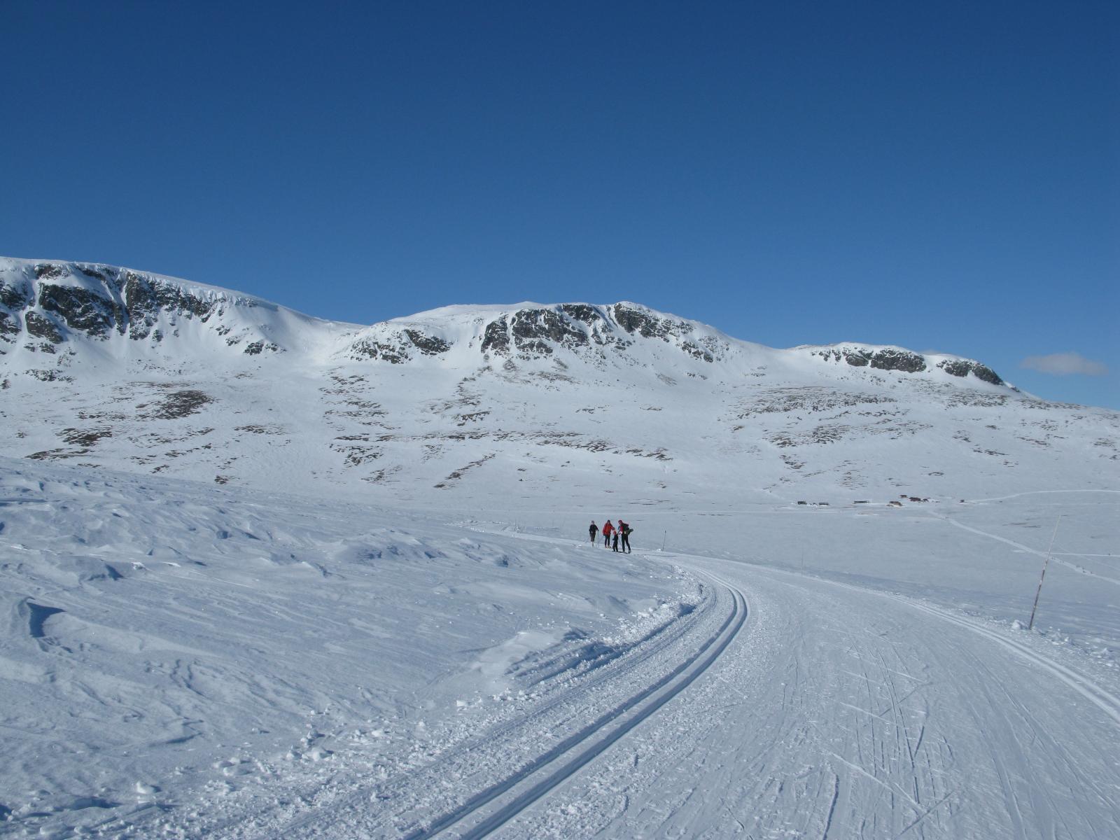1. Jeg er egentlig ikke så optatt av Prestholdt, men det er heller ikke snakk om veldig mye ekstra lengde på turen for å få med seg litt mer på turen enn å labbe opp og feie ned igjen på kortest mulig tid. Og har man en hel dag på tur, så hvorfor ikke bruke den, og er Prestholdt åpen, så er det et fint sted å ta pause på vei opp. Jeg har gått nok på tur med for tungt utstyr til at jeg har skaffet meg noe lettere. Riktignok har jeg ikke vært på Skarvet på rando, men jeg har vært der flere ganger på fjellski. Er utstyret tungt kan det selvsagt være en metode å ta den "Norske" som er å gå "rett på" altså gå opp det bratteste uten å gå på skrå. Nedover i Europa legges "skin track'ene" mye slakere enn det vi Nordmen gjør normalt, vi går rett opp. I dette tilfellet så vil man gå opp der man skal kjøre ned om en går rett på, det er kanskje heller ikke noe man ønsker å unødig lage spor der man skal kjøre. Å gå på skrå er totalt sett lettere enn å gå rett opp, selv om det er lengre. Trådstarter var nybegynner og ikke kjent i området, den letteste måten å finne frem på er å følge løypa. Bildet viser Hallingskarvet, skaret til venstre er Prestholdskaret hvor en skal opp, deretter kan en velge om en går på toppen øst for skaret (høyre) eller vest (venstre). Bildet er tatt omtrent der løypa fra Ustaoset gjør en sving. Herfra kan en altså feie rett ned og gå direkte på Skarvet, eller kjøre litt på skrå, gå via Prestholdt som er bygningene litt til høyre i bildet, ta en pause, deretter går man på skrå opp retning Prestholdskaret. En kjører ned den bakken man står på toppen av, deretter ned fra Skarvet, og så ned resten bak der bildet er tatt, det blir 3 konverteringer feller av/på.