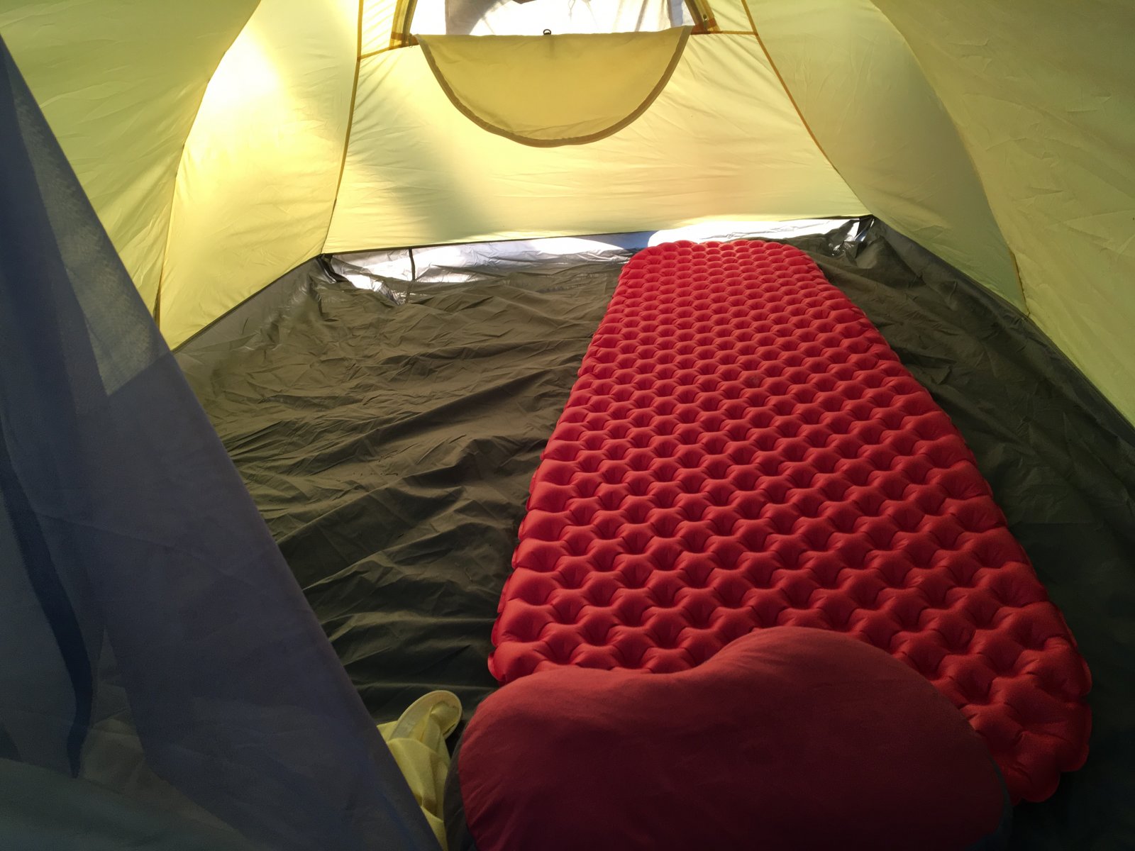 Har noen få netter i det. God plass til meg og bikkja. Verken hodet eller føtter er i kontakt med innerteltet og jeg kan sitte med strak rygg oppå underlaget. Forteltene er store nok til å lagre sekk og lage mat. Takler vind bra, godt nok i de aller fleste forhold. Tror alikevel jeg kommer til å bytte det ut med ett kuppeltelt.