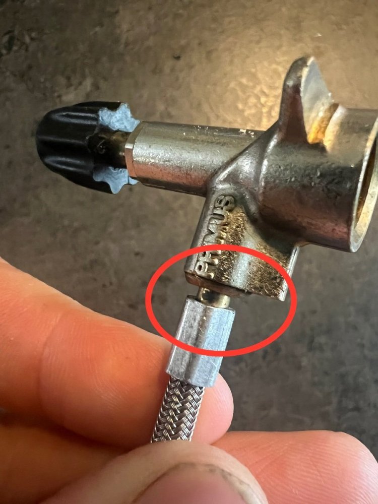 Har en eldre Primus Multifuel hvor slangen lekker ved kranen. Sikkert bare en defekt pakning vil eg tro. Se bildet. Er det noen som vet om dette er mulig å fikse? Finner ingen åpenbare muligheter å demontere den på. Alternativet er å kjøpe en ny til 499,-
