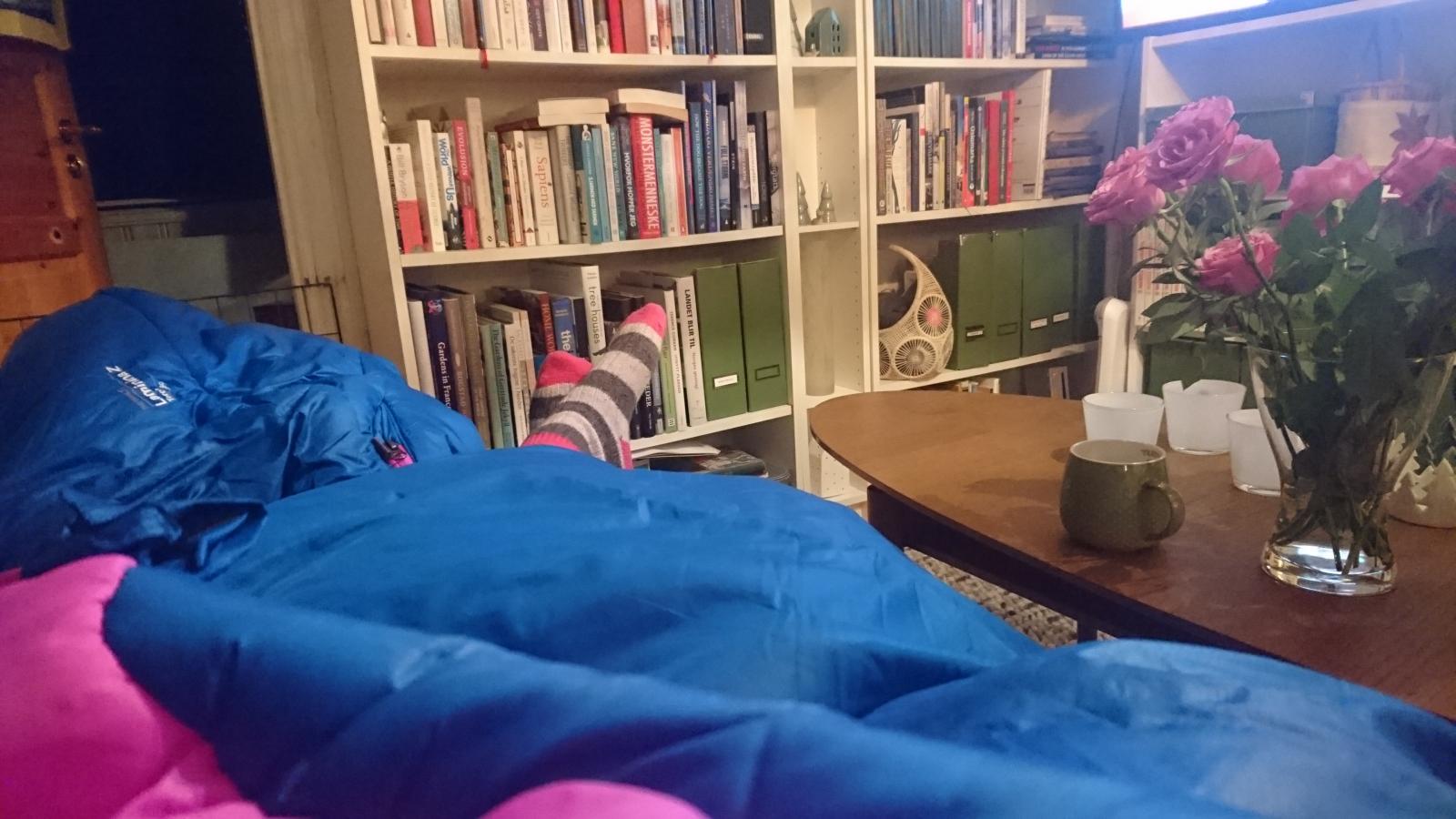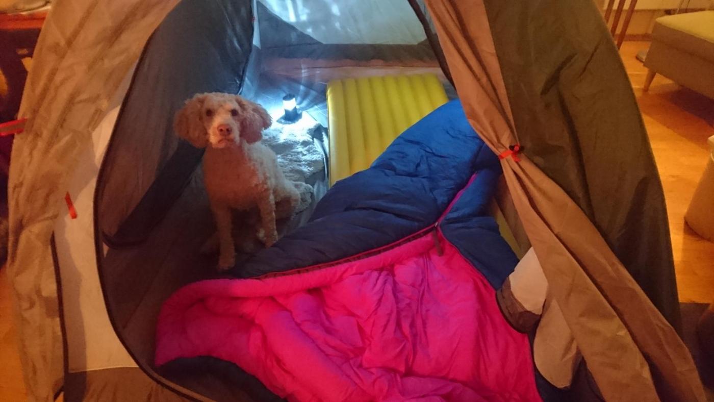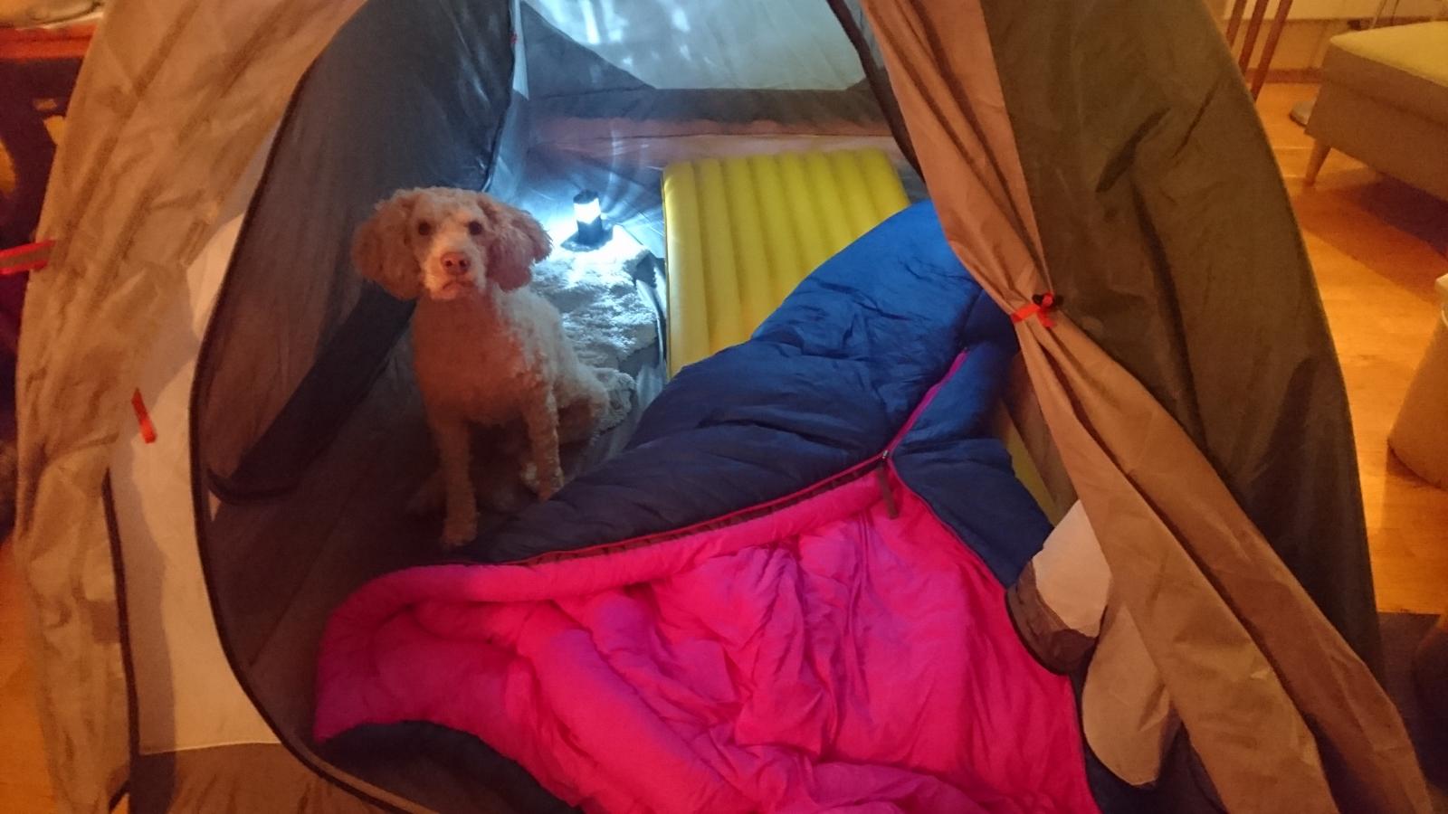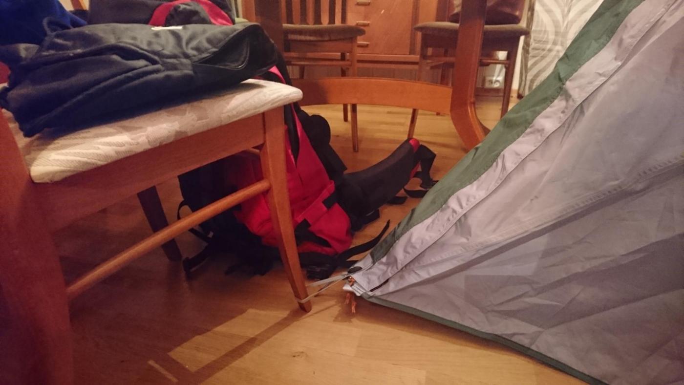En liten oppdatering fra teltkaoset: Jeg har fått låne et tomannstelt (Mountain Hardwear optic vue 2,5) og var pakket og klar for å prøve det lørdag til søndag. Siden alt som kan gå galt, som regel går galt, ble lørdagen tilbragt på legevakten sammen med et familiemedlem, i stedet for ute i skogen. Og da jeg endelig kom meg hjem, var det blitt mørkt og for sent å dra ut. Men natt i telt ble det. Her er erfaringene jeg tok med meg fra en natt med veldig plant friluftsliv: De som lager telt må være utrolig tynne mennesker. Eventuelt ompa-lompaer. Da jeg og min exped synmat hadde tatt plass, skjønner jeg ikke helt hvor de 1,5 personene skulle ligge. Mer enn nok plass til meg og hunden, men å få enda et liggeunderlag til der inne, tror jeg ville holde hardt. Det går helt fint å bytte ut Real turmat med takeout pizza på telttur. Kan virkelig gå god for myggbeskyttelsen i teltet. Var ikke plaget av en eneste mygg, klegg, knott eller hjortelusflue gjennom hele natta. Til tross for at jeg glemte å lukke igjen myggnettingen. Opplevde heller ikke kondens, is eller andre fuktproblemer. Men det var nære på, holdt på å velte en farrisflaske inne i teltet. Lamina Z er i overkant varm å sove i, selv om jeg er fryktelig frossen av meg og det viser januar måned. Frøs overhode ikke, måtte faktisk lufte flere ganger. Stolbein egner seg godt som feste for barduner etc. Vi likte oss såpass godt i teltet at vi snart drar på tur igjen. Kanskje tilogmed utendørs.
